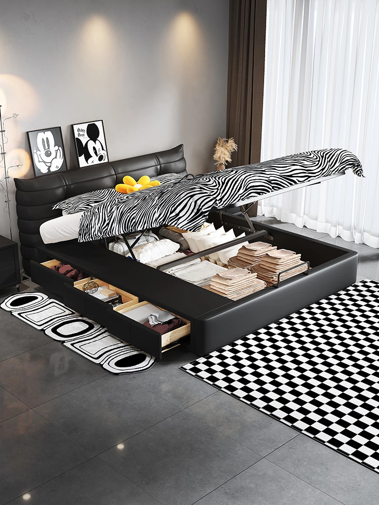 Luxurious Modern Leather Storage Bed with Drawers - Stylish & Spacious Design for Master Bedroom