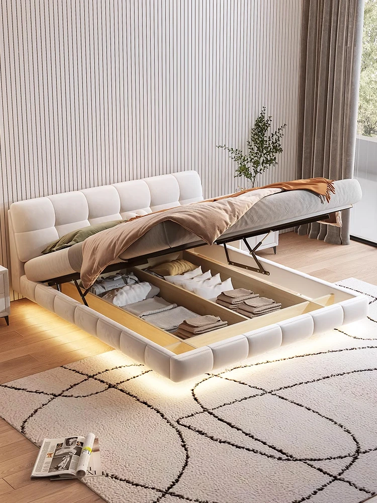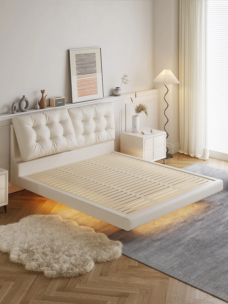 Floating Leather Storage Bed - Elegant Cream Design - 1.5m/1.8m Size for Master Bedroom - Space-Saving Solution for Cozy Apartments
