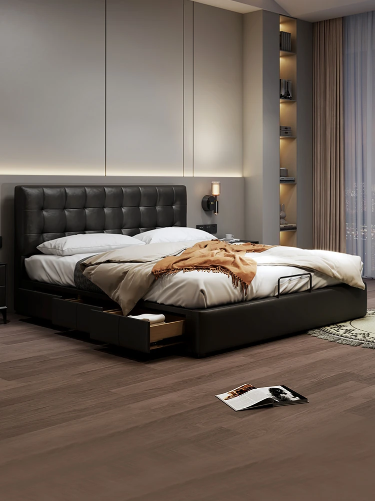 大樹導入・現代的ラグジュアリー本革ベッド|高級感溢れる収納付きダブルベッド|主寝室にぴったりのイタリアンミニマリズム・シャピレ婚礼ベッド