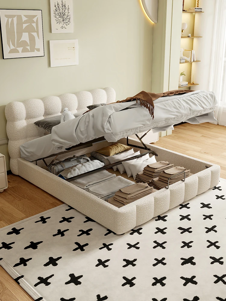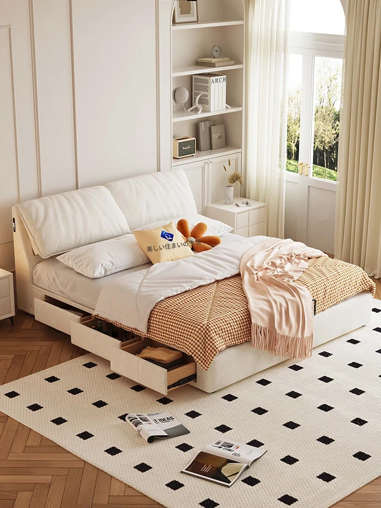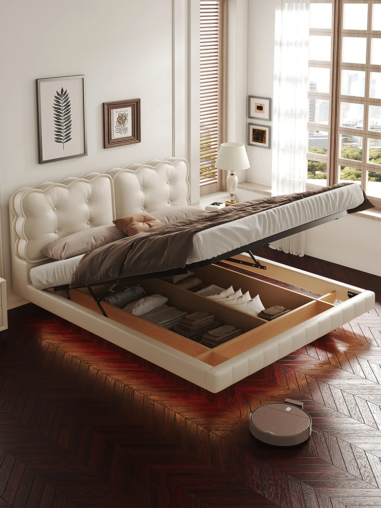フランス風クリームレザーのモダンシンプル主寝室用2人用収納アートベッド–雲の上で漂うようなユニークデザイン!