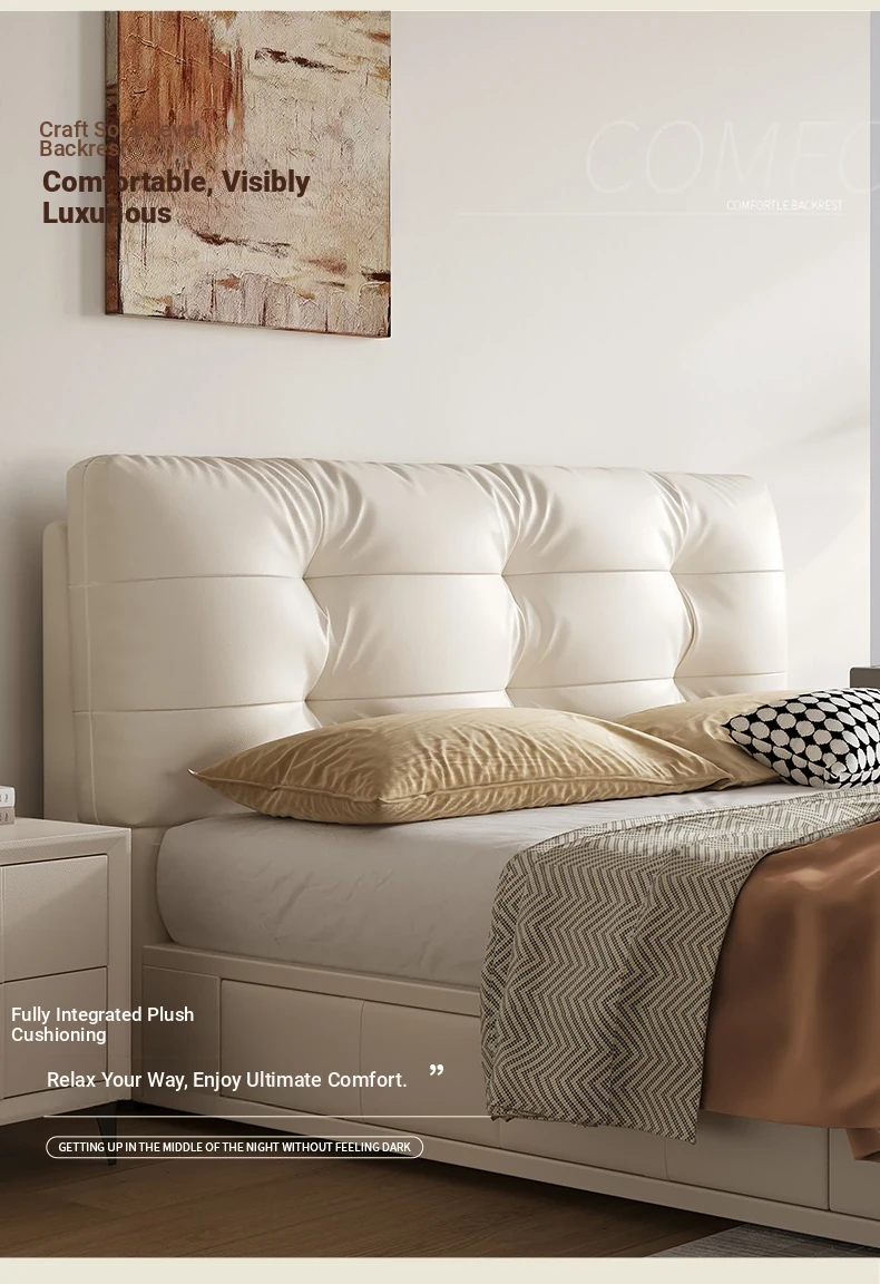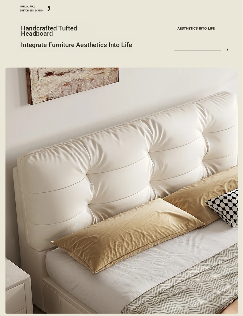 Chic Cream-Inspired Leather Bed with Storage - Modern Minimalist Fairy Tale Design for Master Bedroom