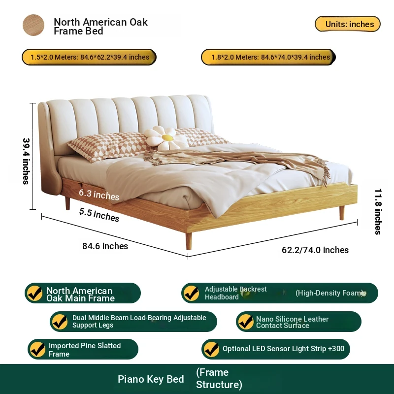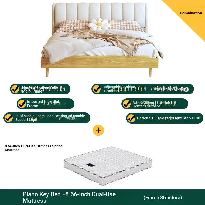 Piano key bed +8.66in soft and hard mattress (high box structure)