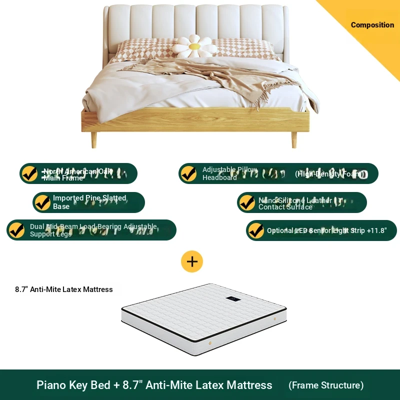 Piano Key Bed +8.66in Mite Removal Latex Mattress (High Box Structure)