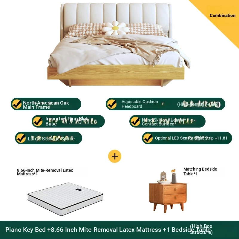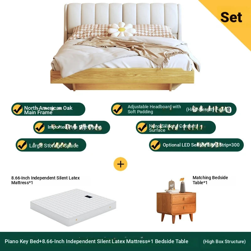 Piano key bed +8.66in independent silencer latex mattress +1 bedside table (high box structure)