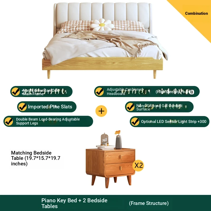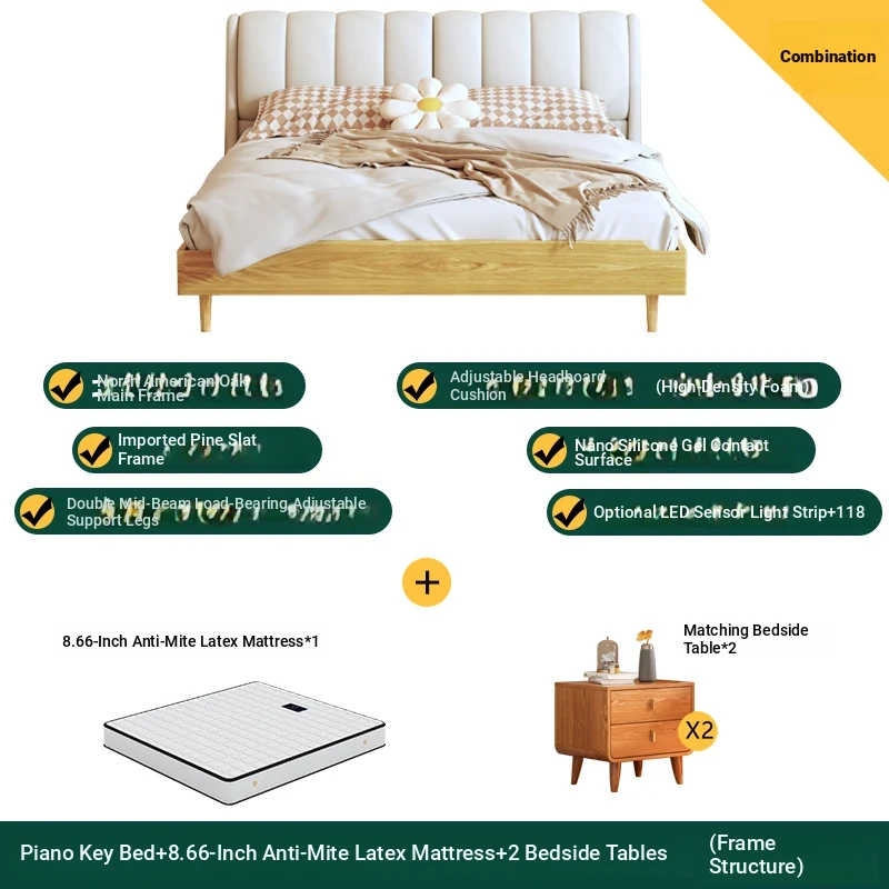 Piano key bed +8.66in mite removal latex mattress +2 bedside tables (frame structure)