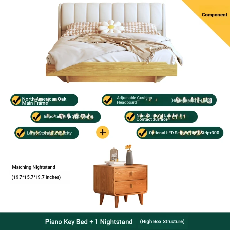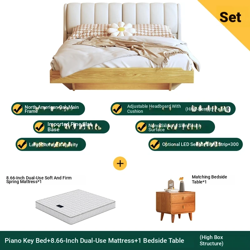 Piano key bed +8.66in soft and hard mattress +1 bedside table (high box structure)