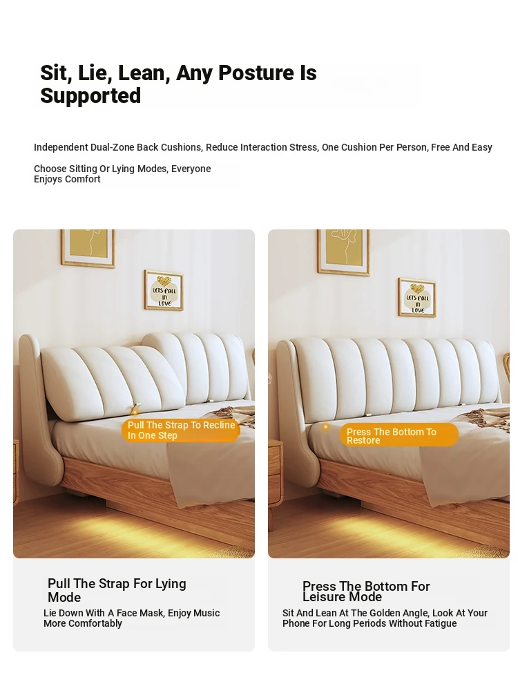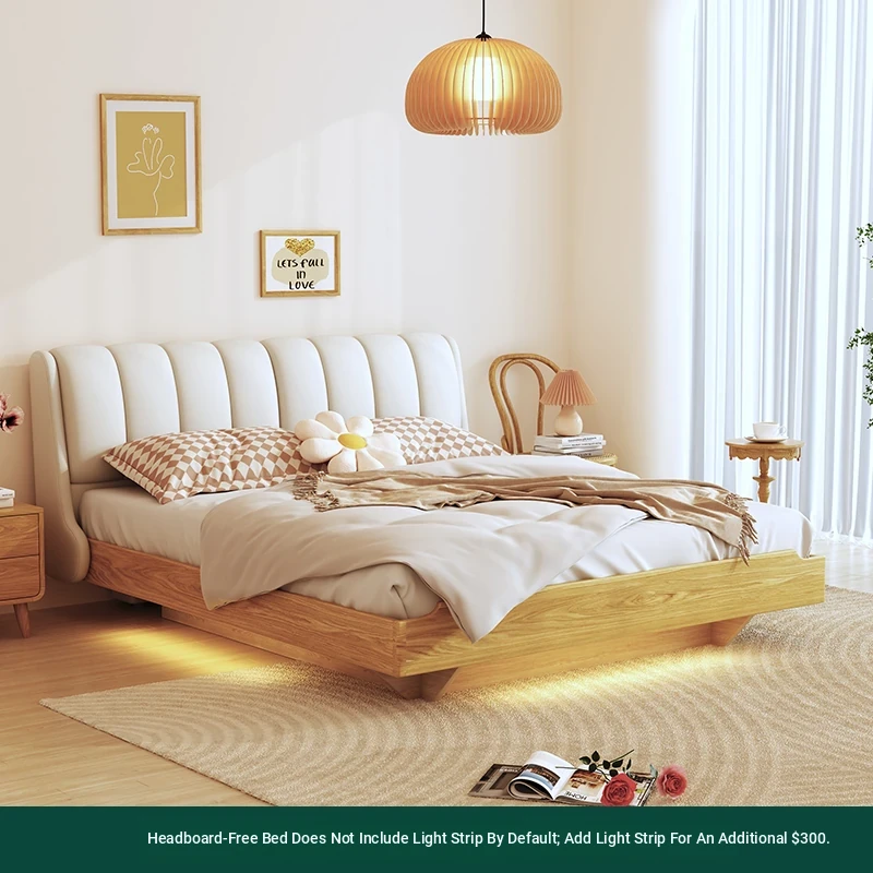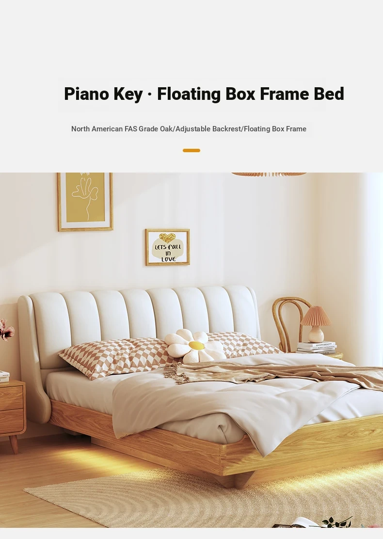 LuxHome Creamy Solid Wood Floating Bed - Modern Minimalist Multifunctional Japanese Oak Design for Master Bedroom