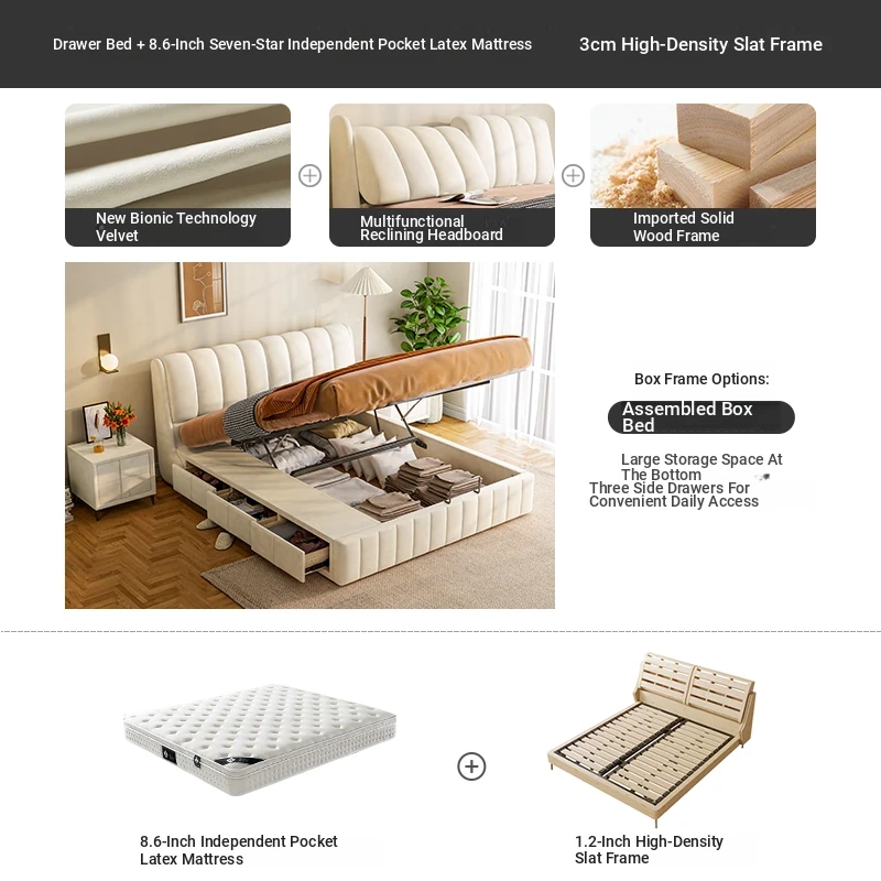 Drawer bed +2 cabinets +8.66in seven-star Independent bag Latex Mattress [1.18in encrypted row skeleton]]