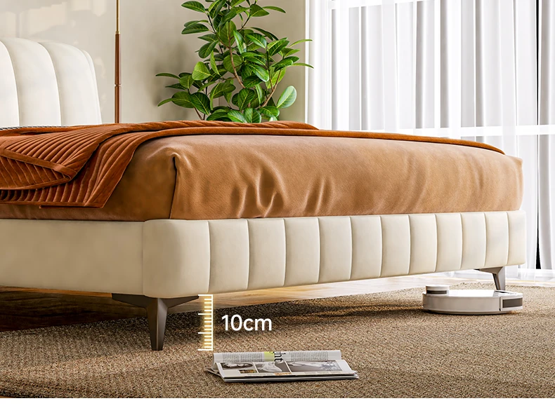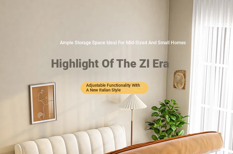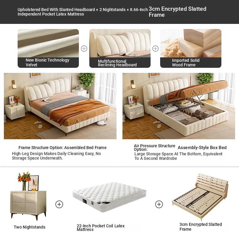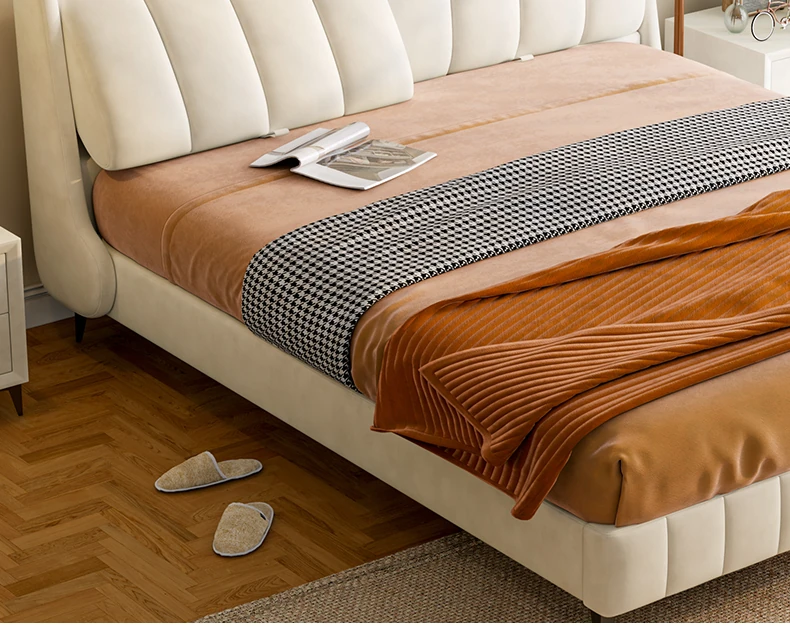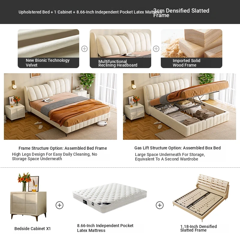 Luxurious Home Living Adjustable Backrest Tech Fabric Bed - Modern Nordic Style Double Bed with Soft Cream Aesthetic for Master Bedroom