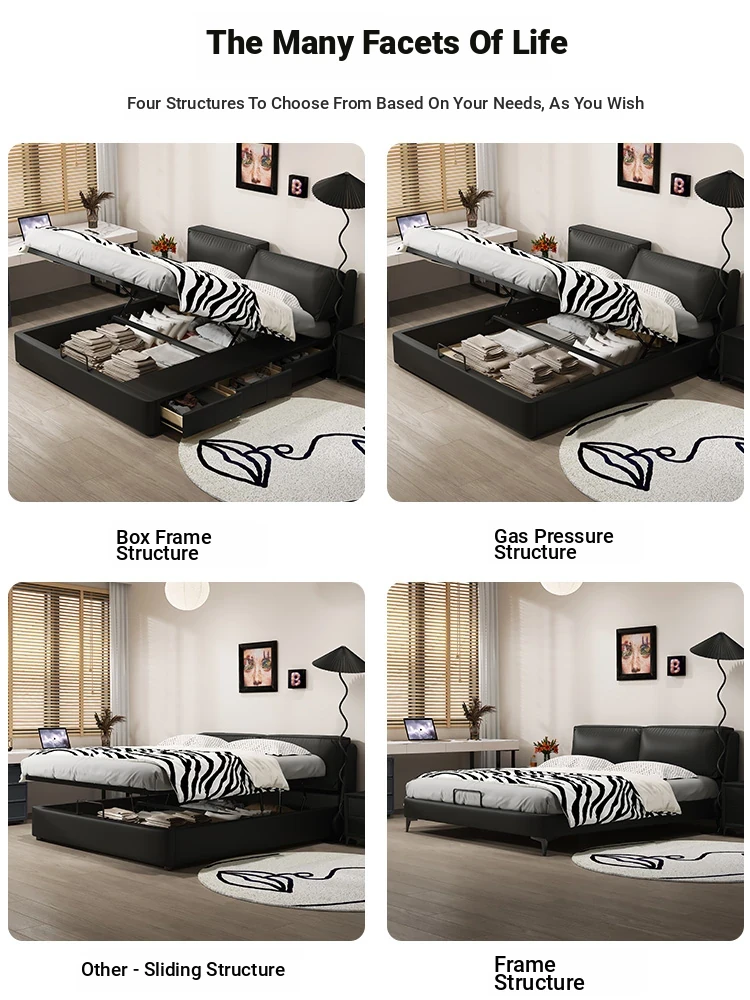 Luxurious Italian Minimalist Black Leather Bed - Modern Nordic Chic Design for a Stylish Bedroom or Sophisticated Master Suite