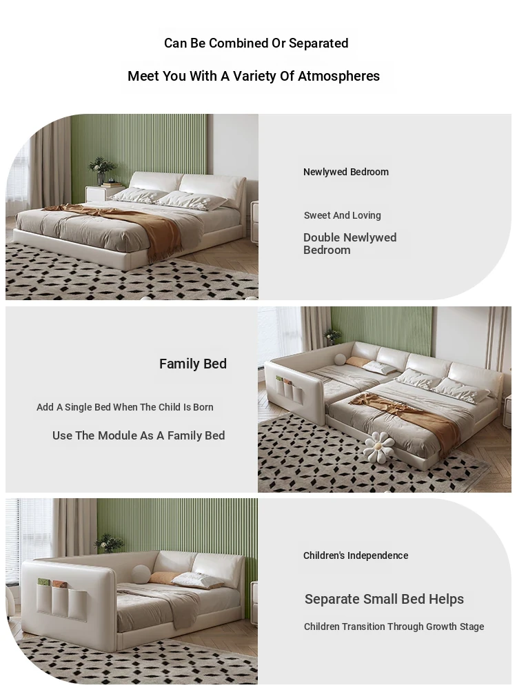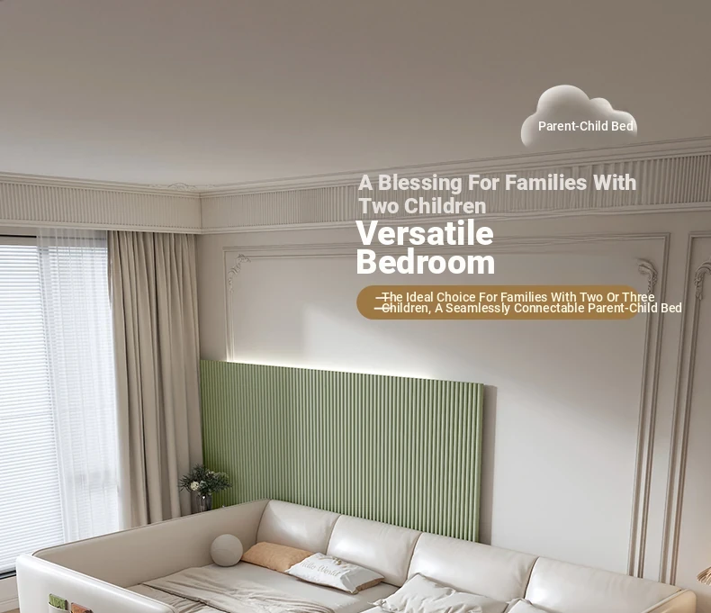 Luxurious Solid Wood Minimalist Children's Leather Parent-Child Bed - Modern Stylish Floor Bed with Designer Flair for Trendy Families