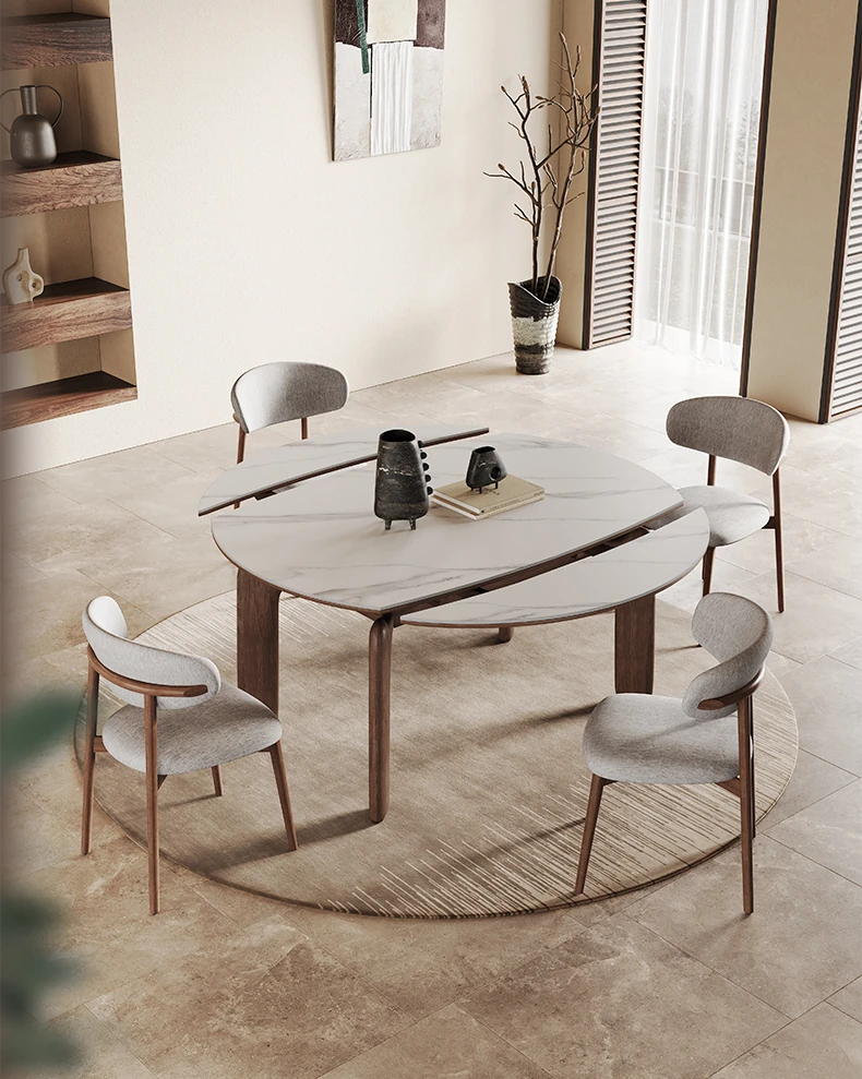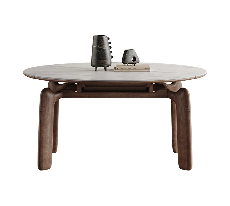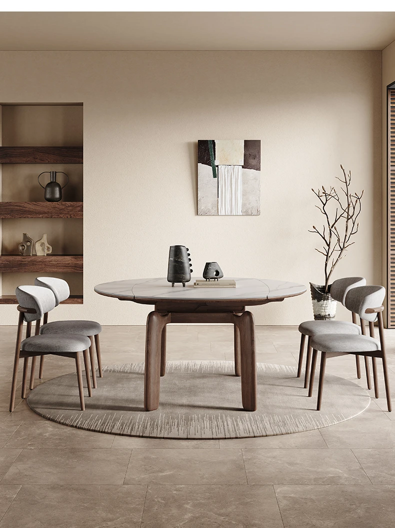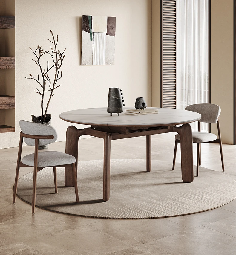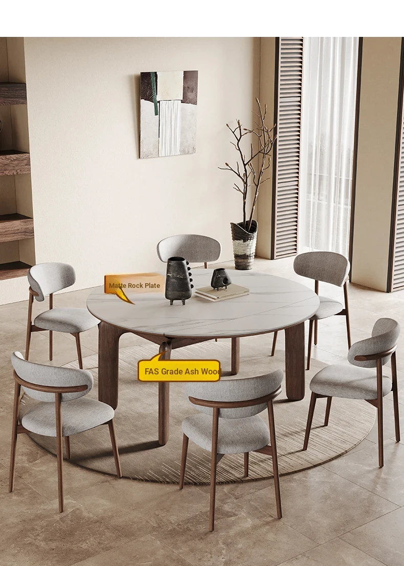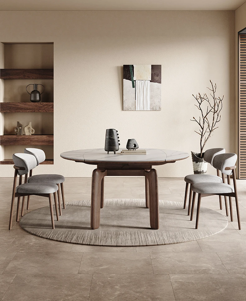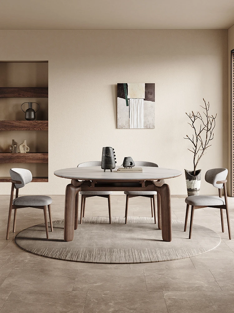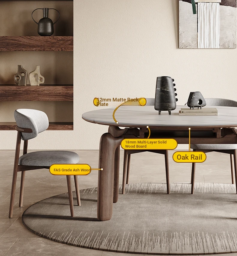 "Matte Round Dining Table with Solid Wood Sabi Style and Elephant Legs – Perfect for Creating a Cozy and Aesthetic Dining Space"