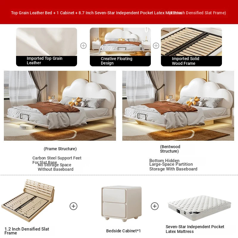 First layer cowhide bed +1 cabinet +8.66in five-star mite removal Latex Mattress [1.18in encrypted row skeleton]]