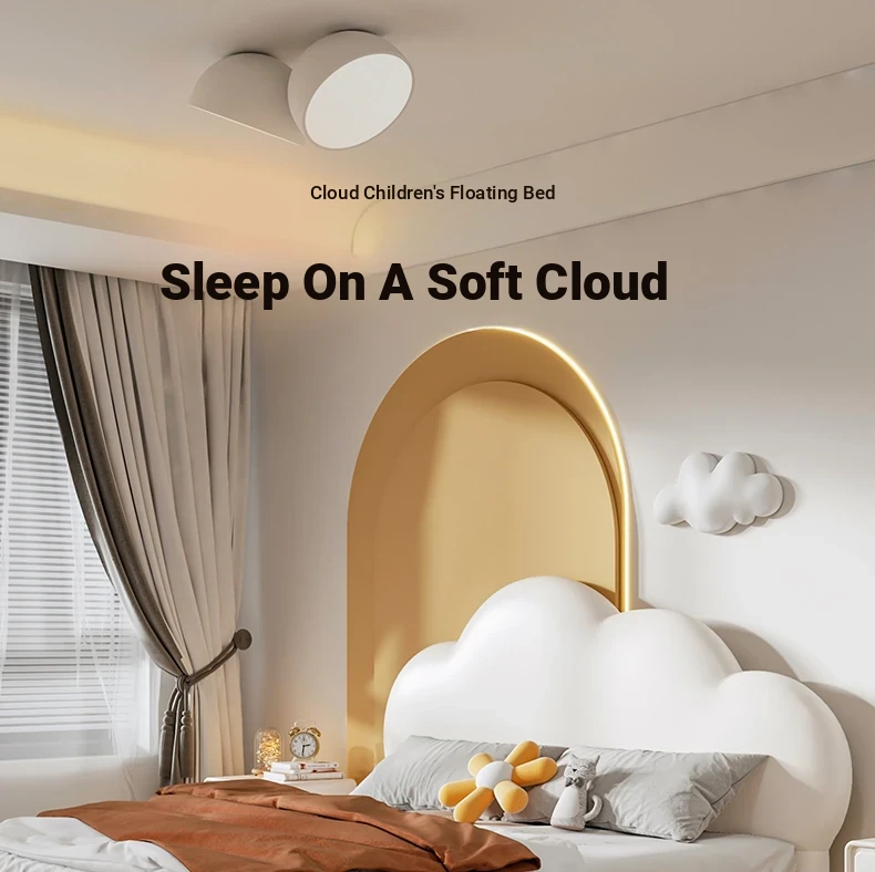 Modern Minimalist Cloud Princess Bed - Solid Wood Storage Children's Bed with Genuine Leather, Perfect for Girls' Rooms - Floating Design by Monster Beds