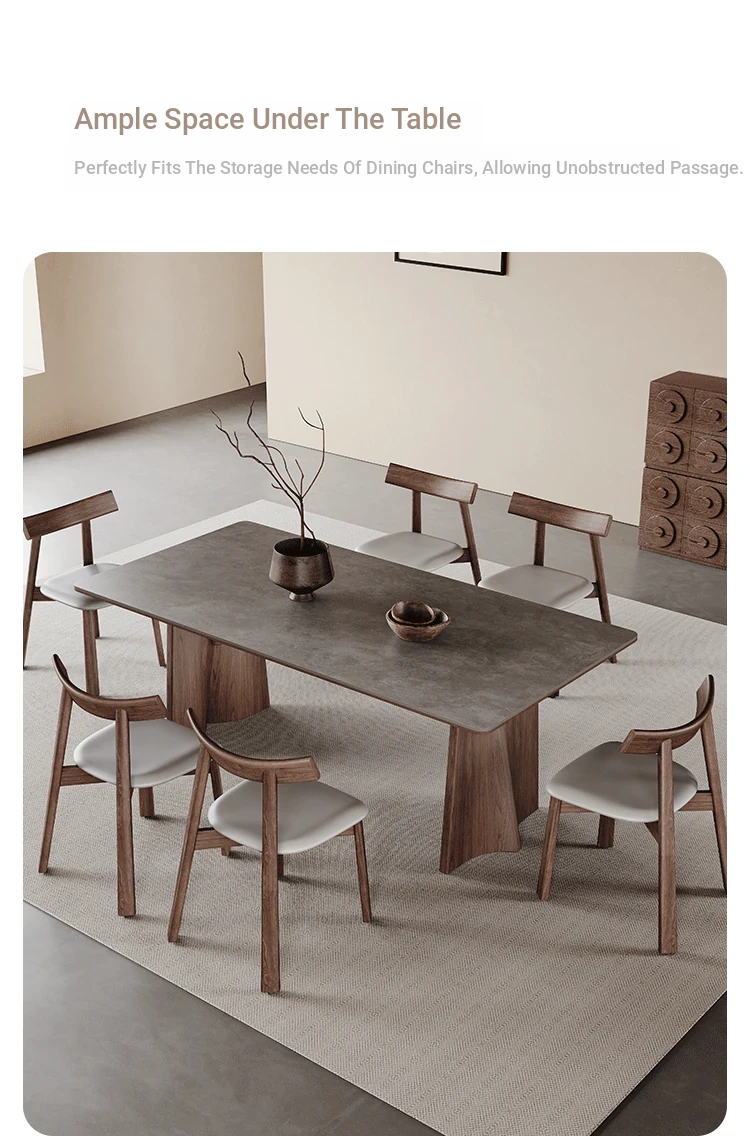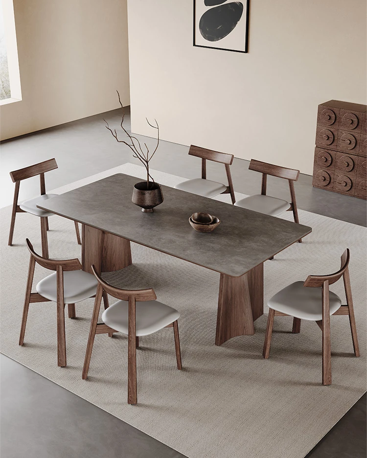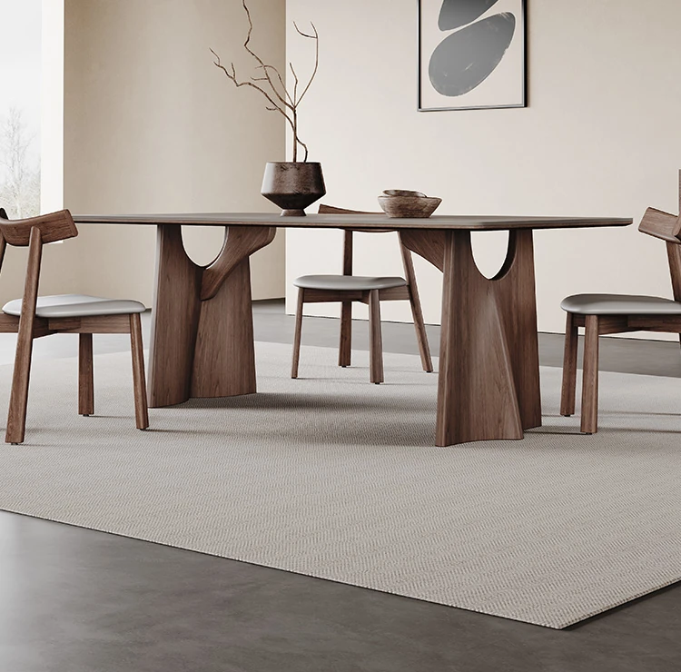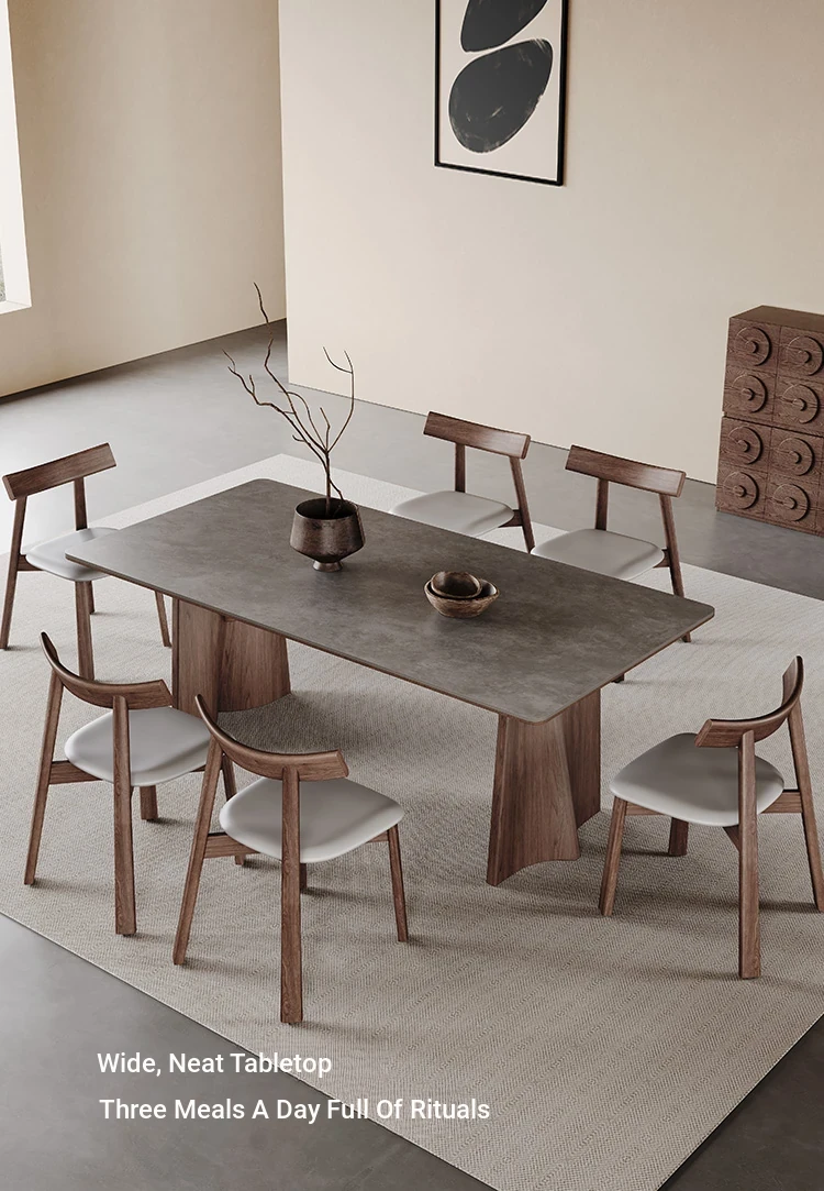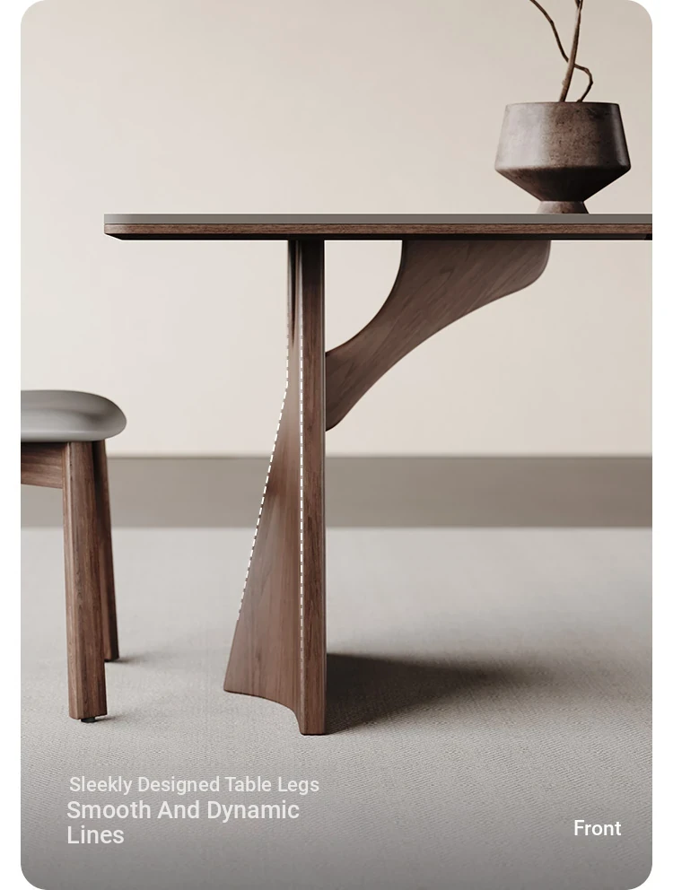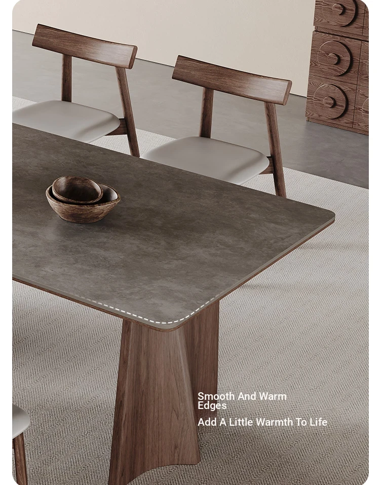Scandinavian Modern Minimalist Walnut Dining Table with Rock Slab Top - Stylish & Elegant Design for Contemporary Homes