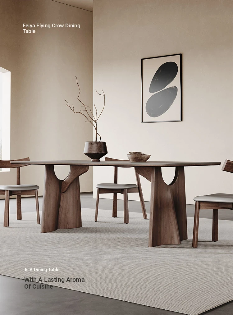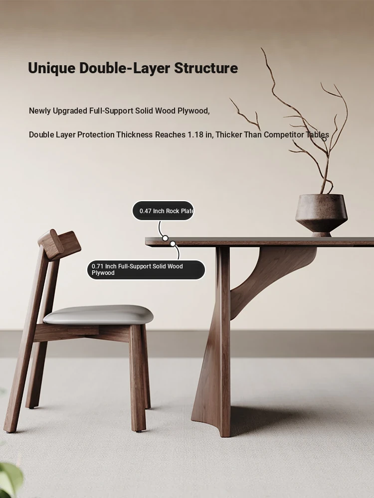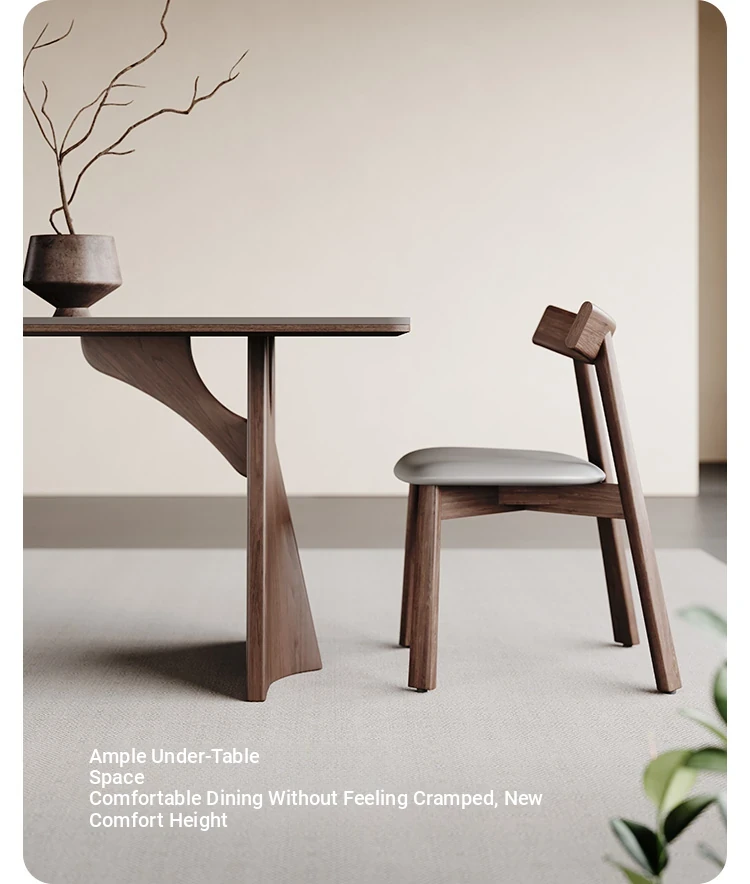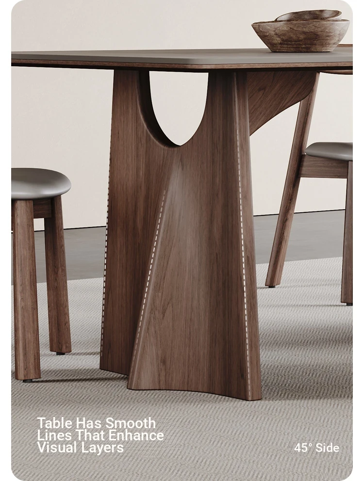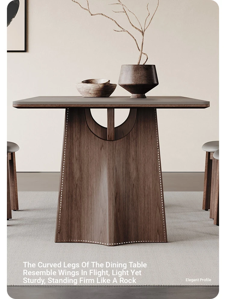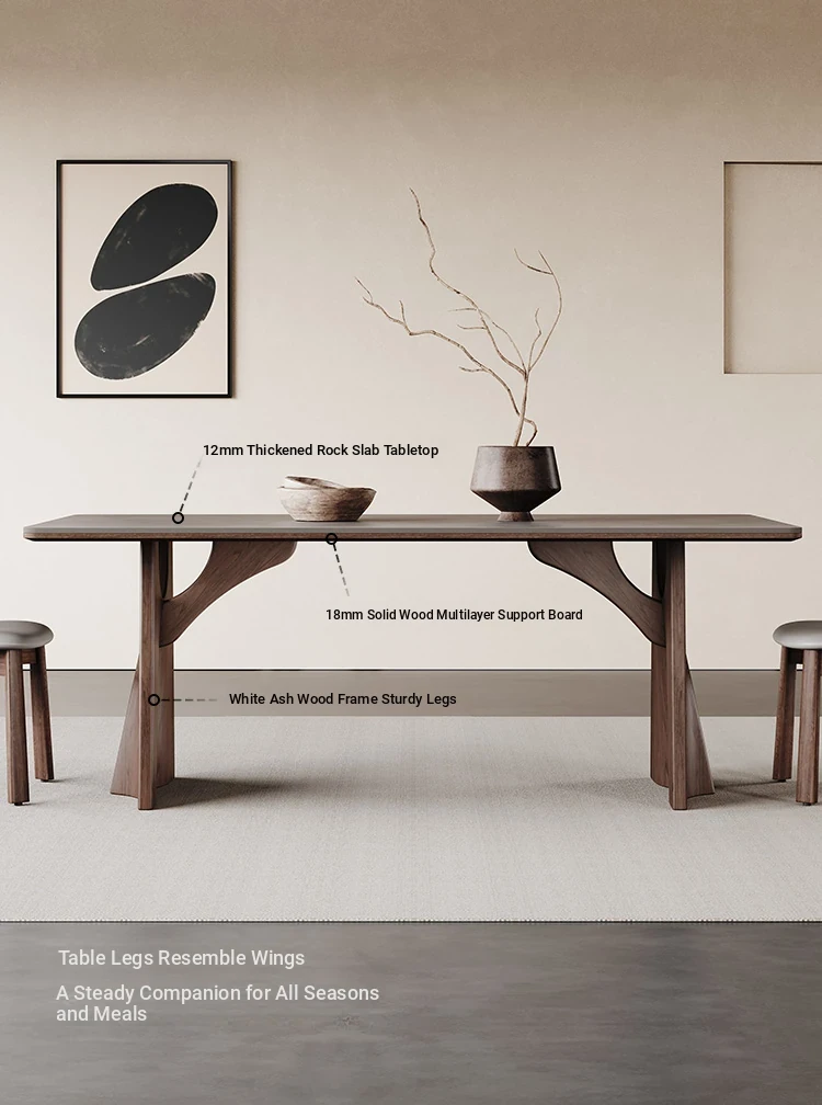 Scandinavian Modern Minimalist Walnut Dining Table with Rock Slab Top - Stylish & Elegant Design for Contemporary Homes