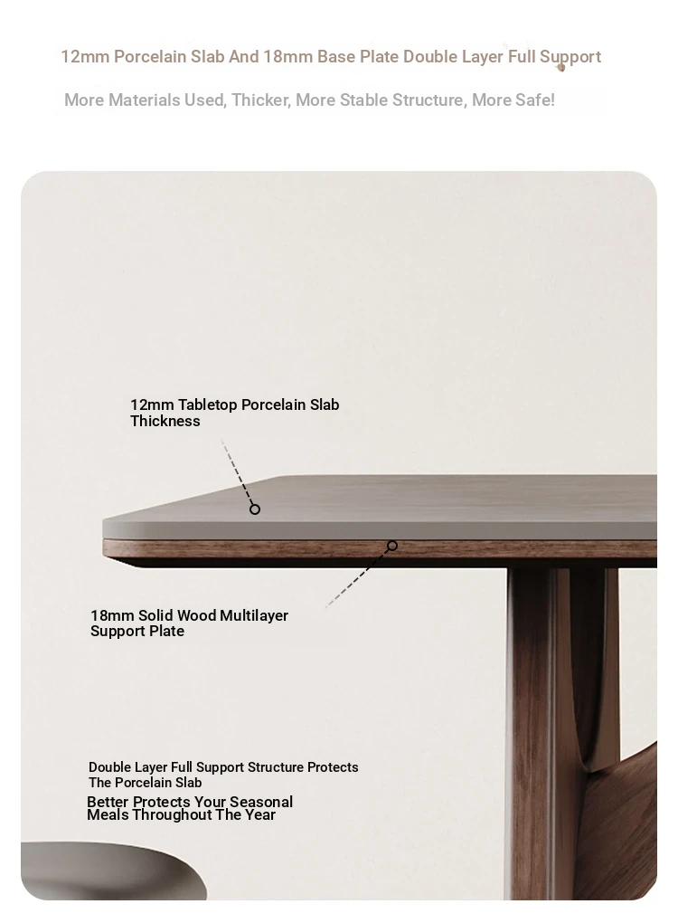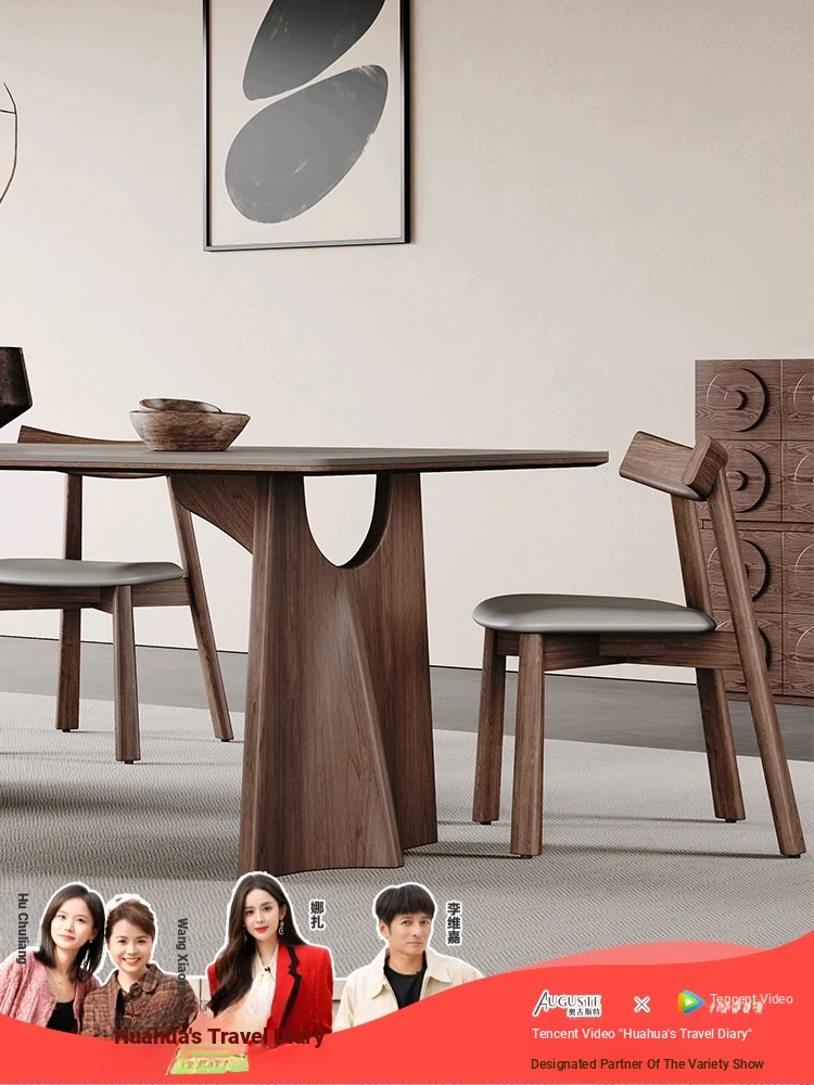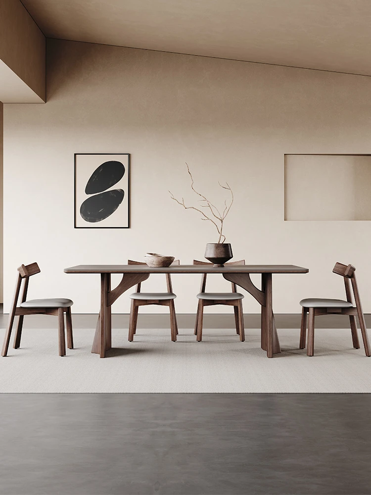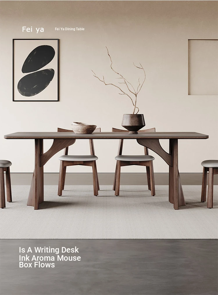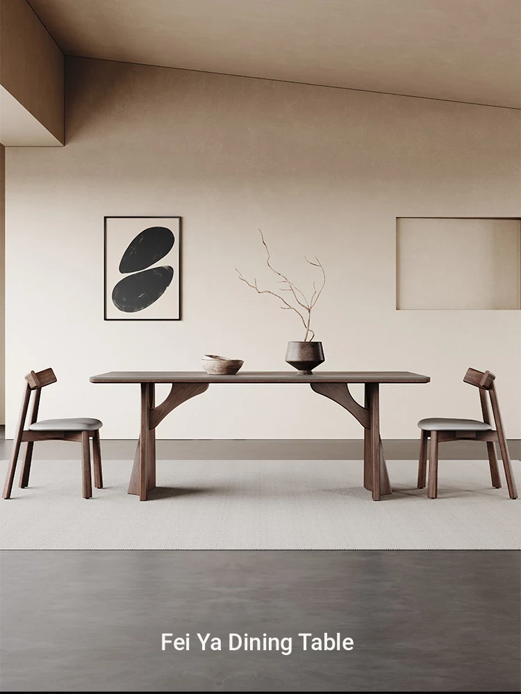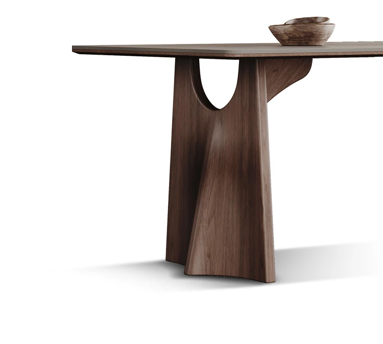 Scandinavian Modern Minimalist Walnut Dining Table with Rock Slab Top - Stylish & Elegant Design for Contemporary Homes