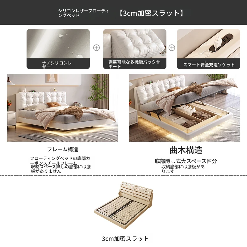 シリコーンレザー浮床+1台キャビネット【3cm高密度スラットフレーム】