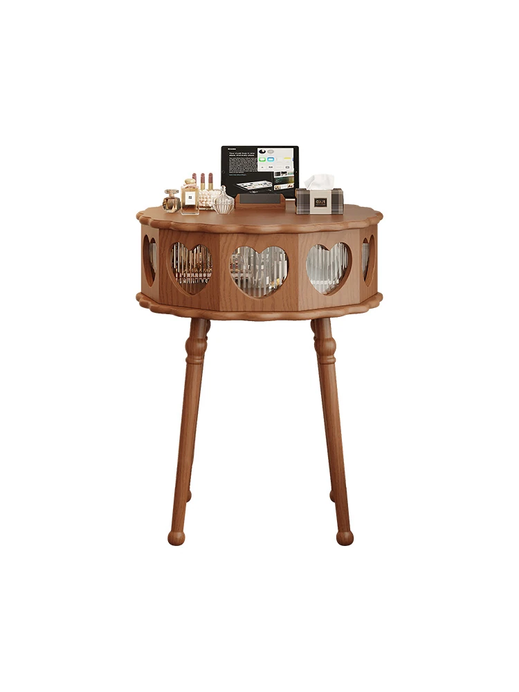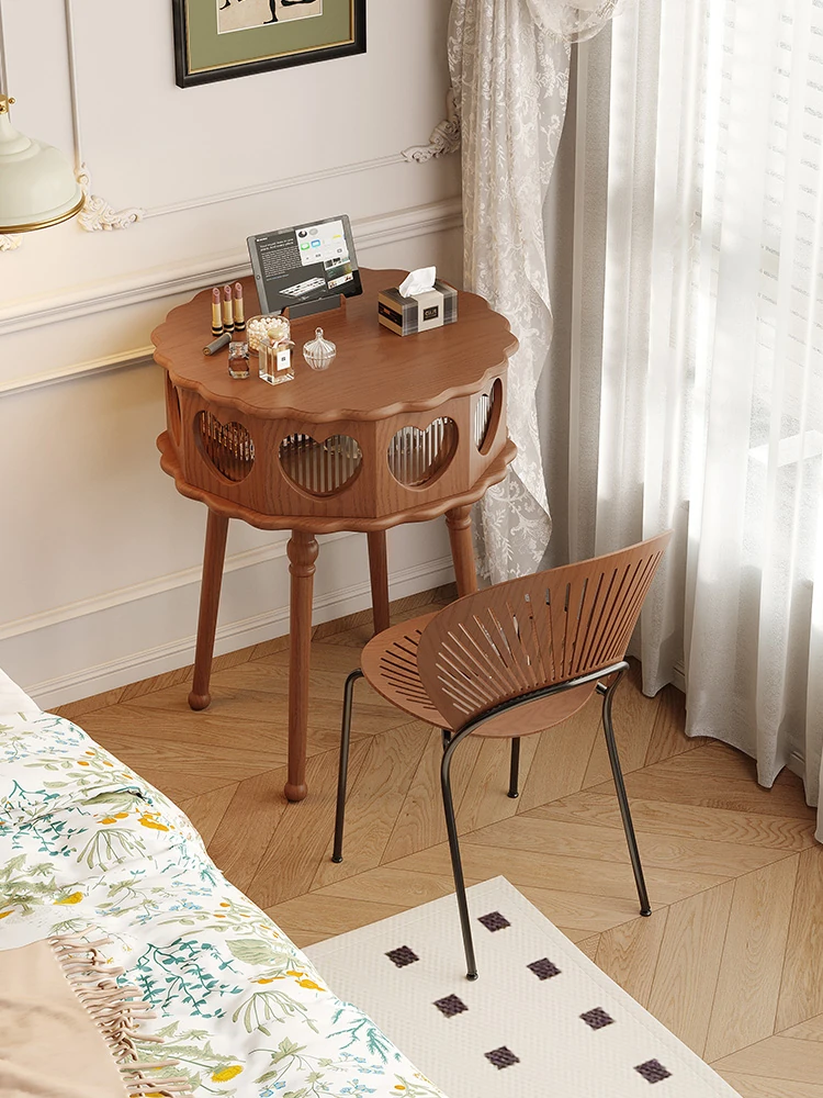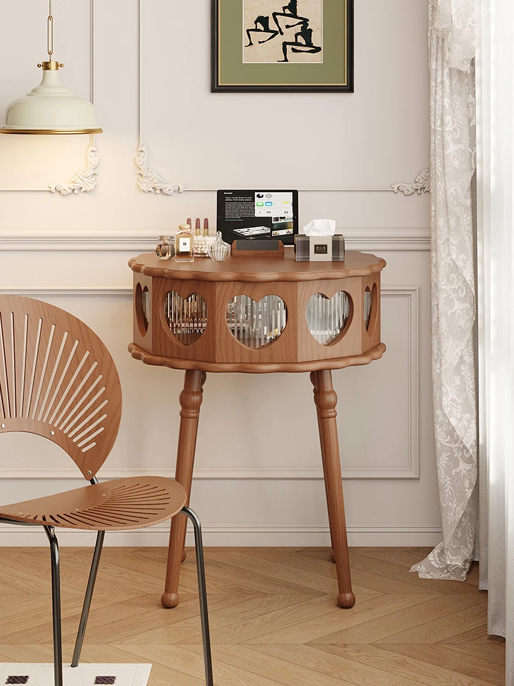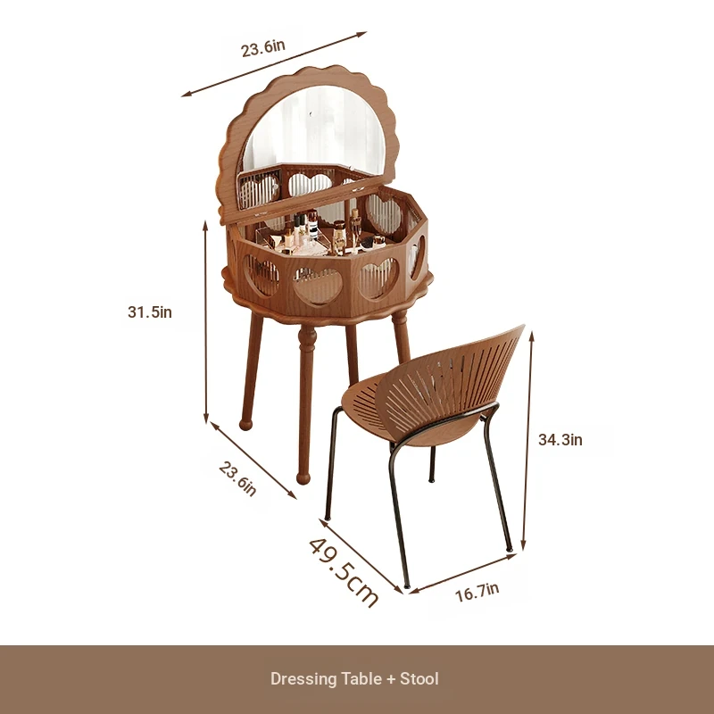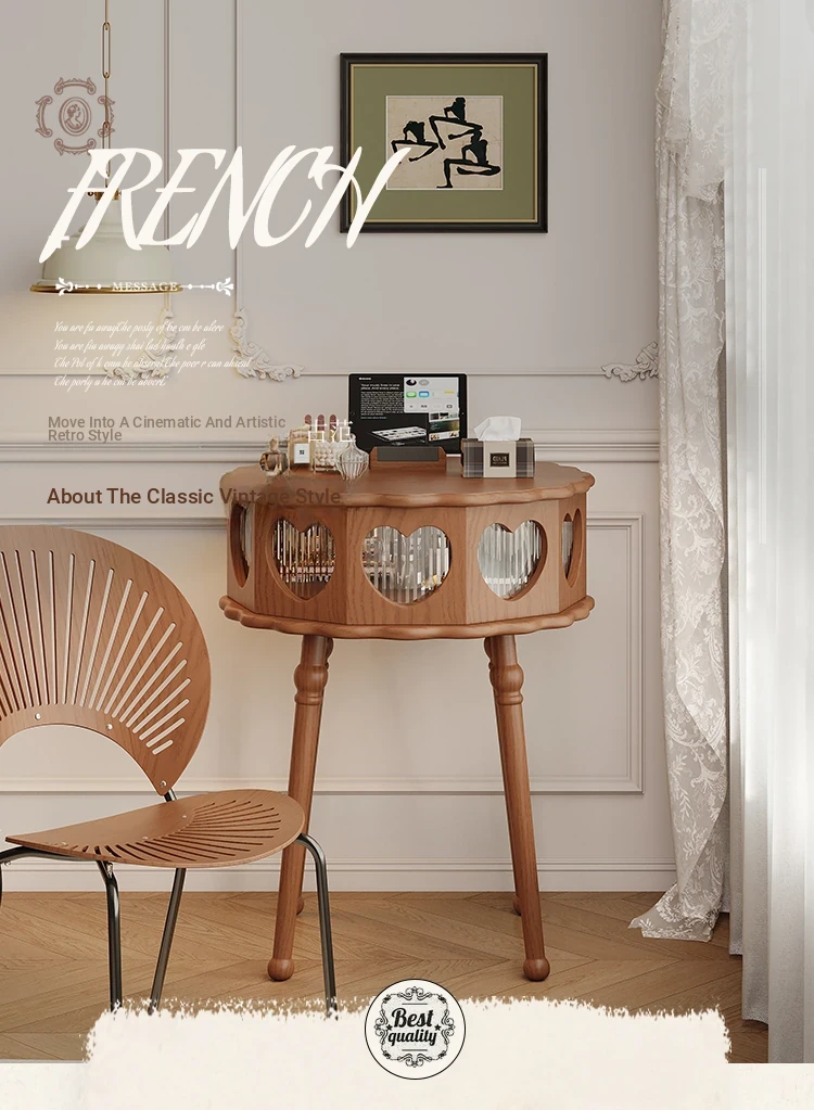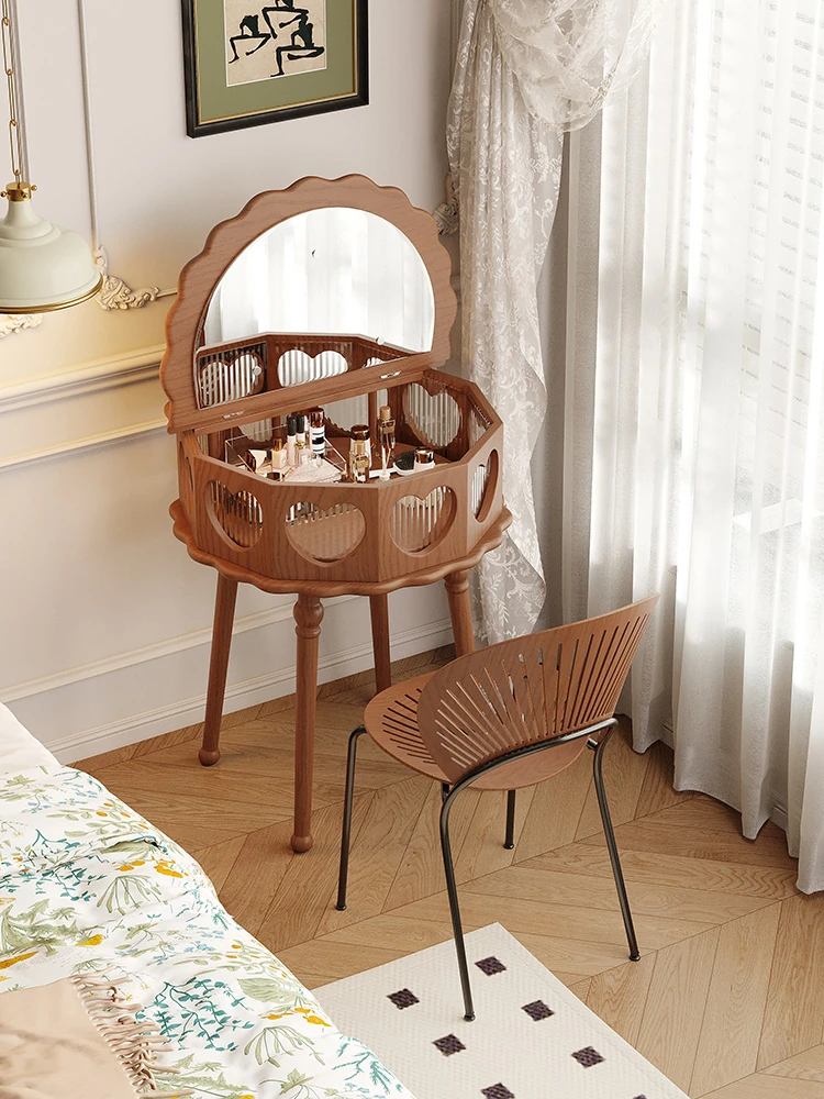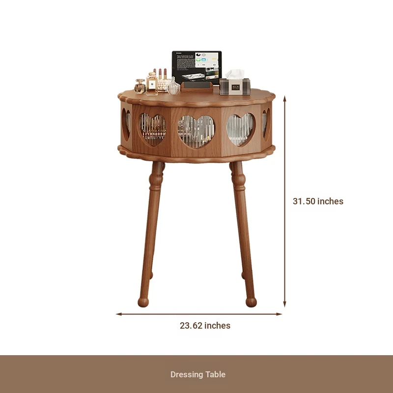 ヴィンテージフレンチスタイルの天然木製ドレッサー - 小型回転式ミニラウンドメイクアップテーブル。コンパクトなサイズでお部屋にぴったり!