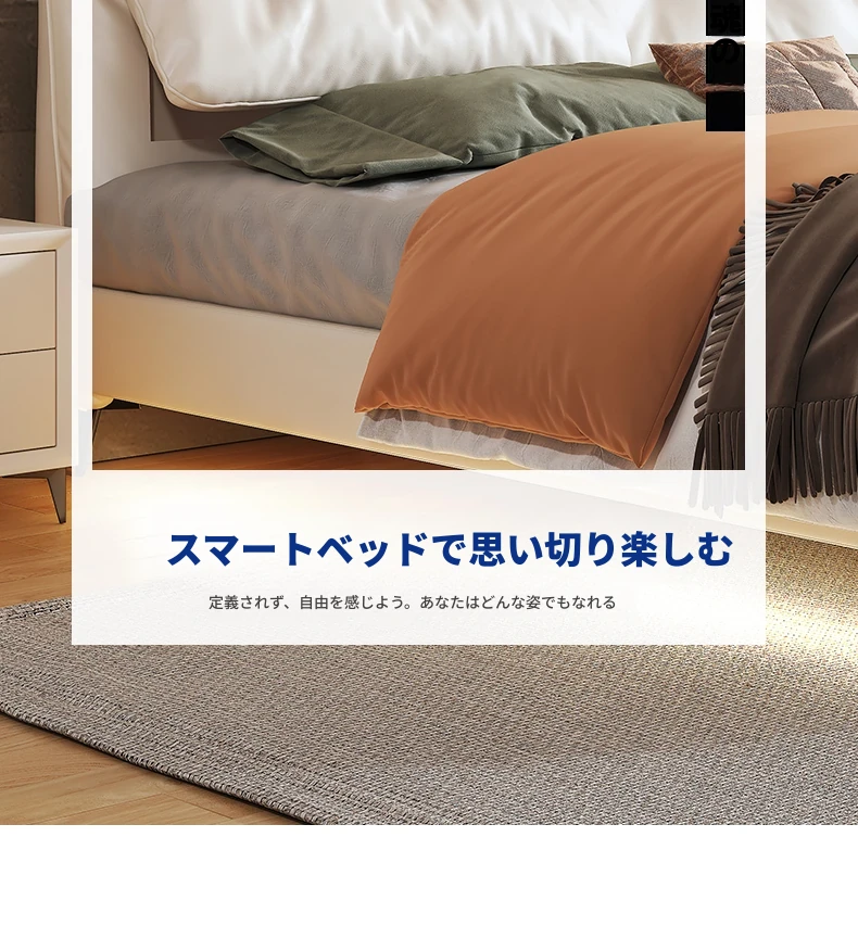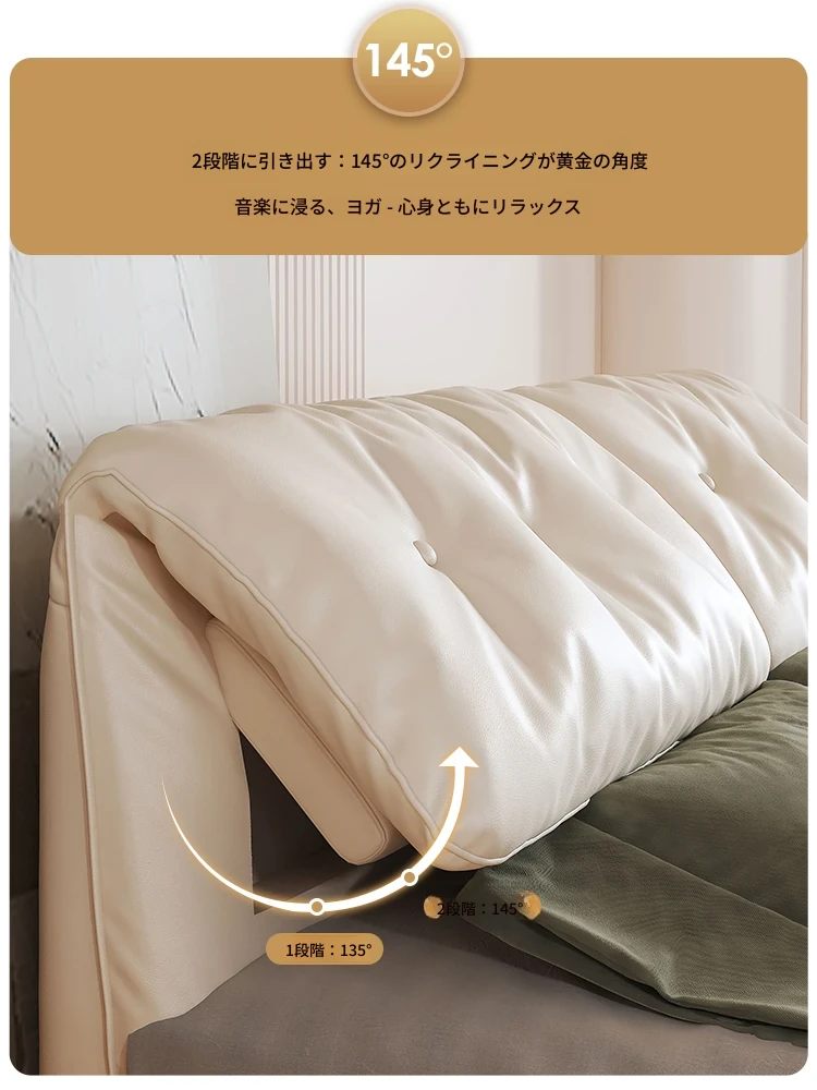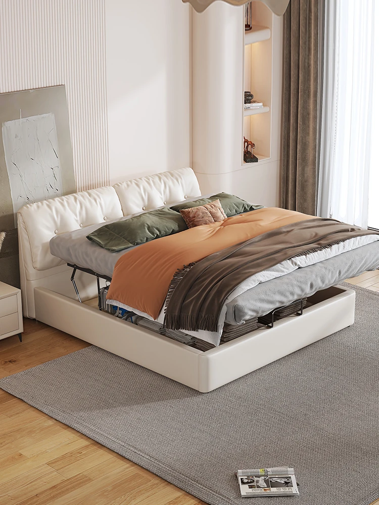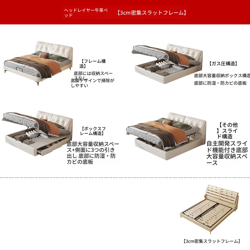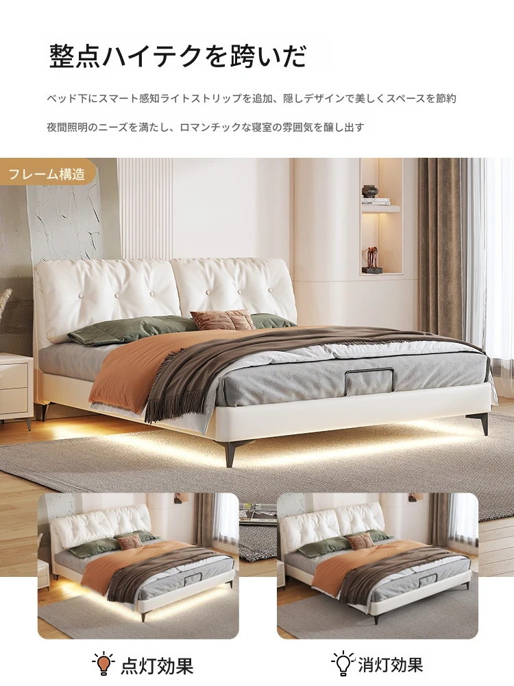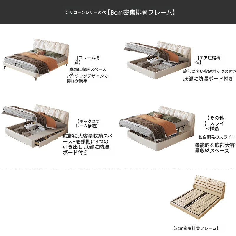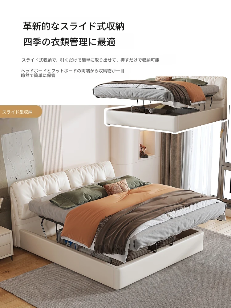 イタリアンモダンデザインの浮遊式収納付きレザーベッド - トレンドをリードする極上の快適空間を演出