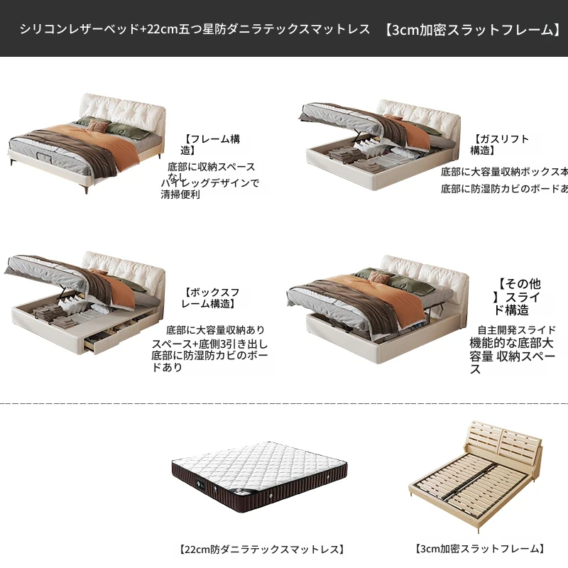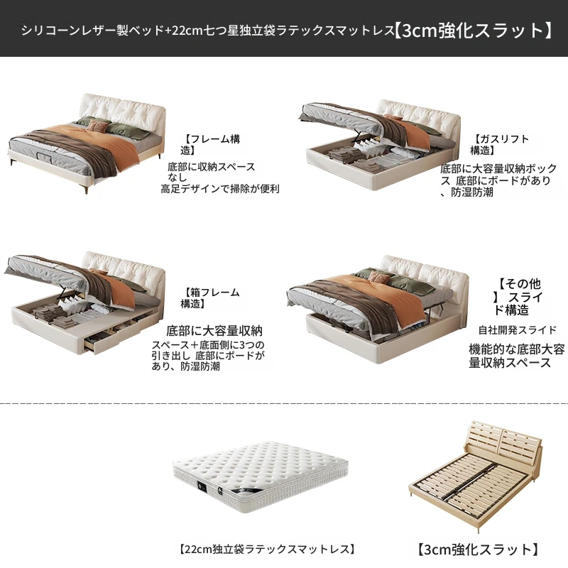シリコンレザーベッド+22cm五つ星抗ダニラテックスマットレス【3cmハイデンシティスラット】