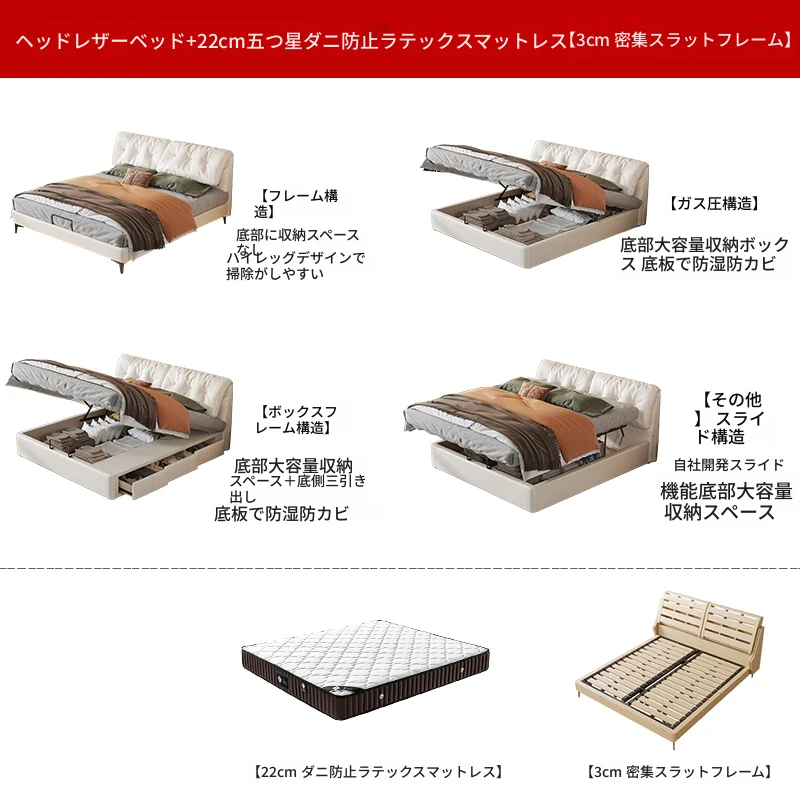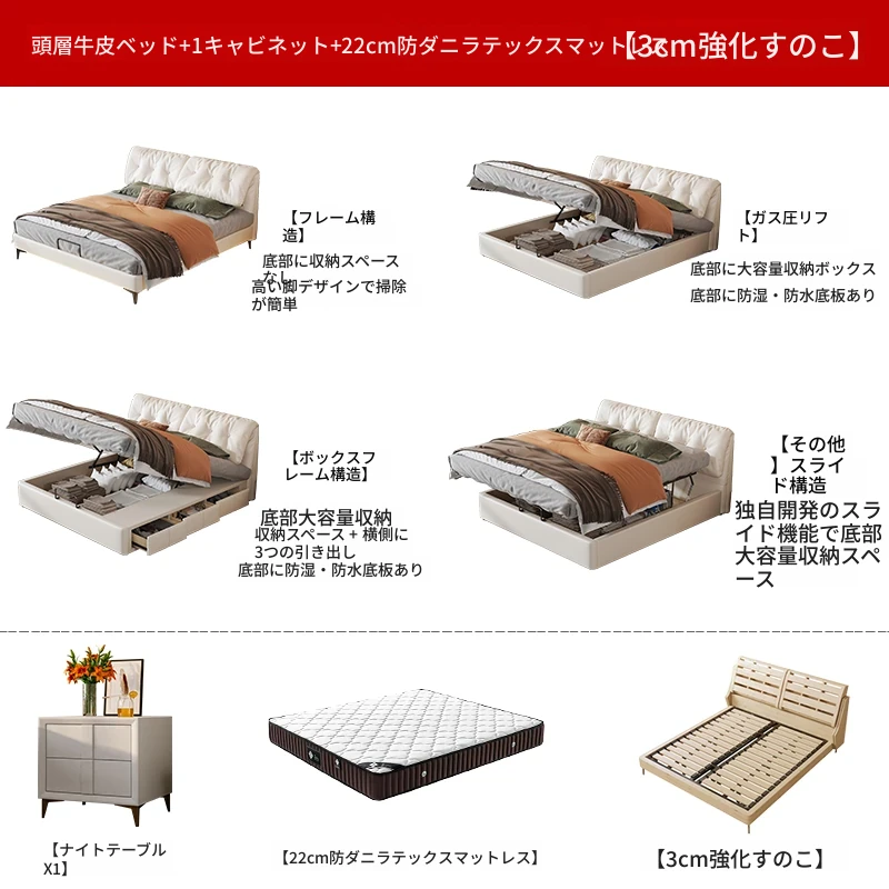トップレザーのベッド+1キャビネット+22cm五つ星抗ダニラテックスマットレス【3cmハイデンシティスラット】