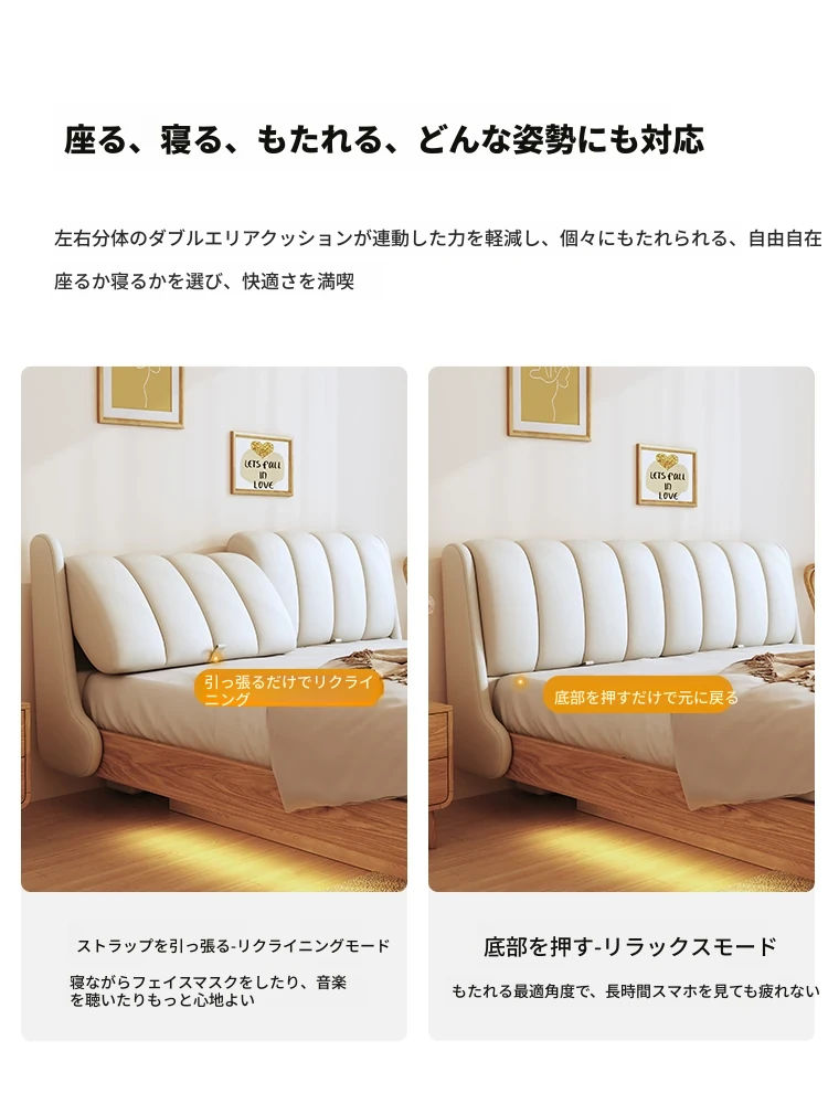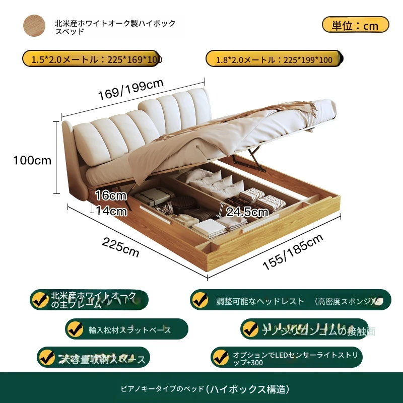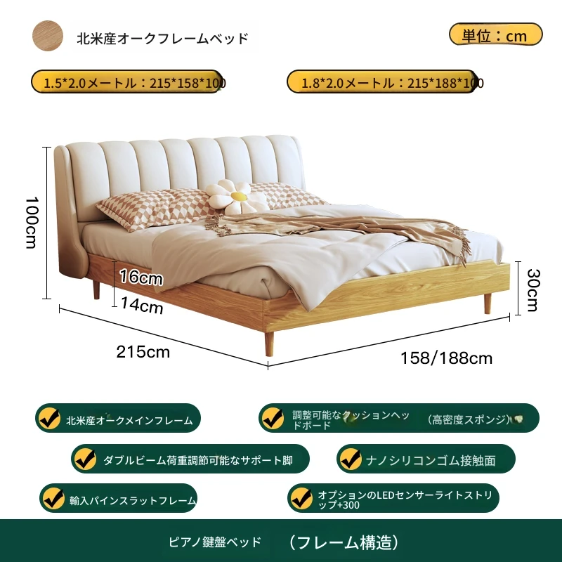 【ピアノキー構造ベッドはデフォルトでシリコン皮、ヘッドレザーレザーに交換+600】