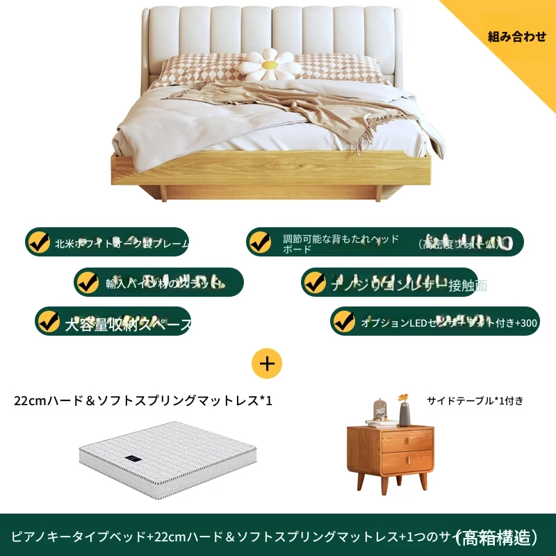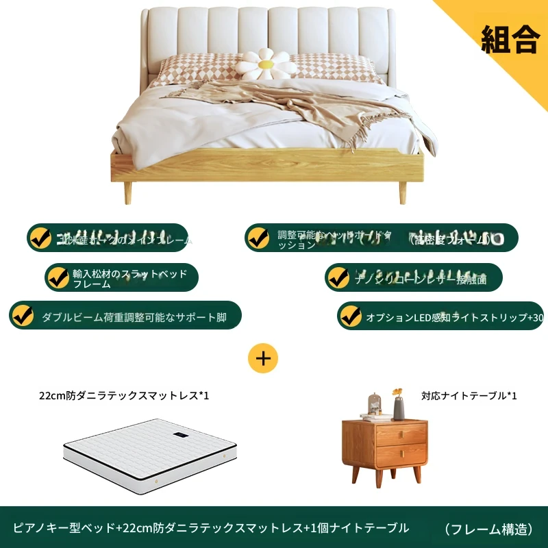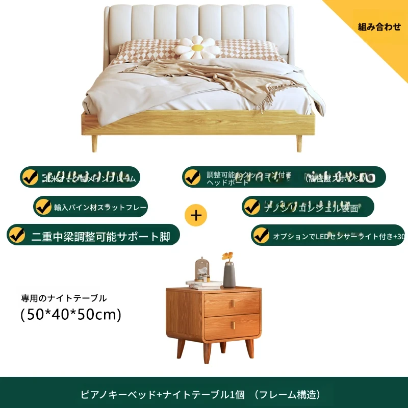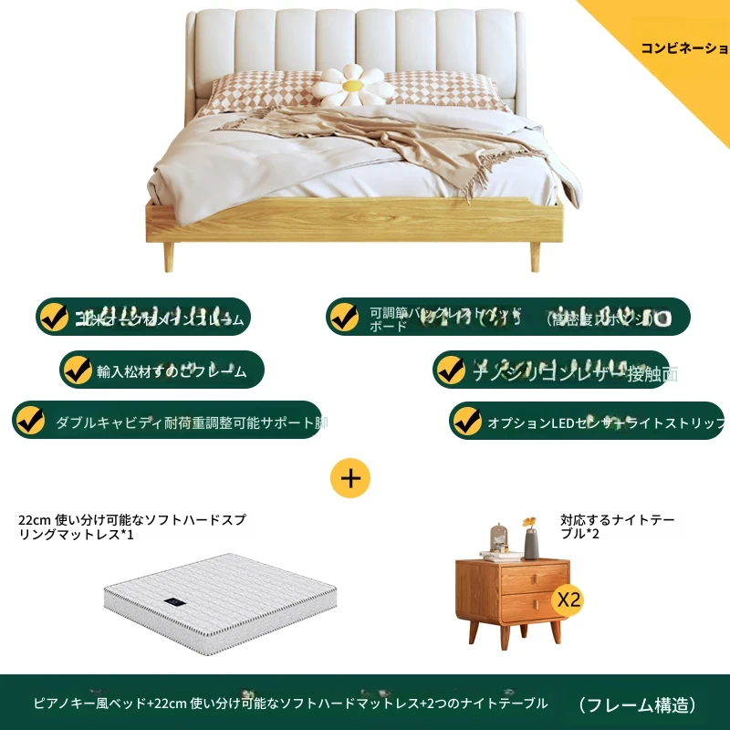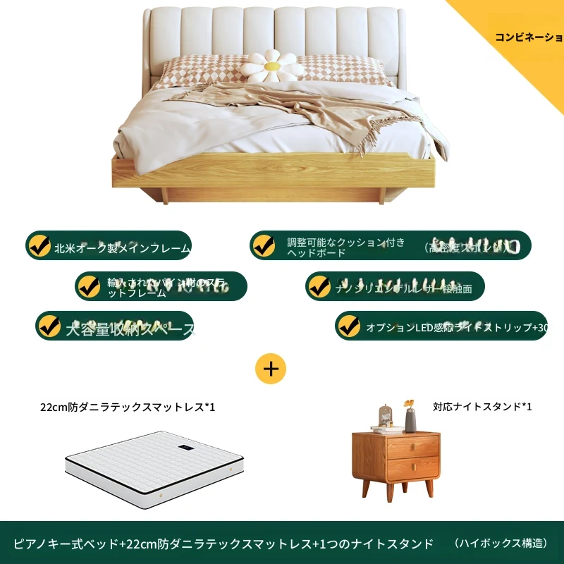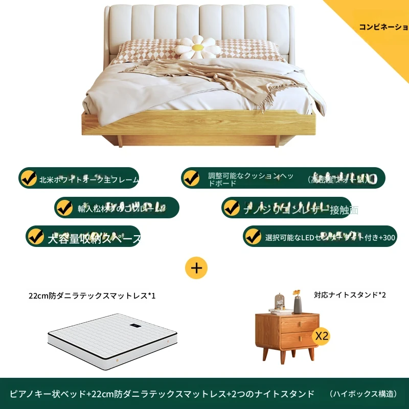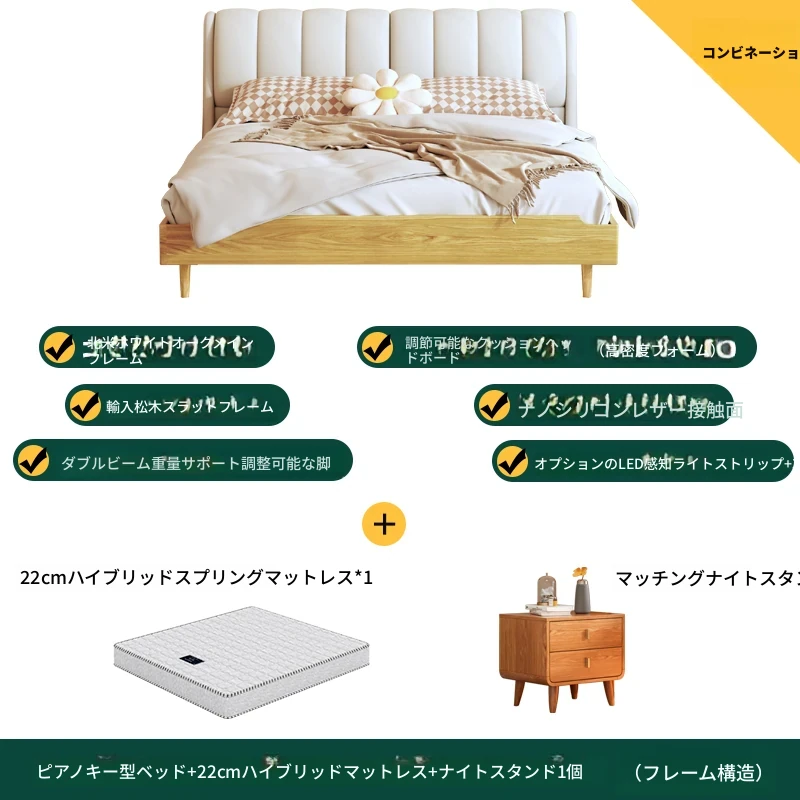ピアノキー構造ベッド+1台ナイトスタンド(ハイブリッド構造)