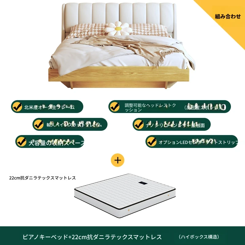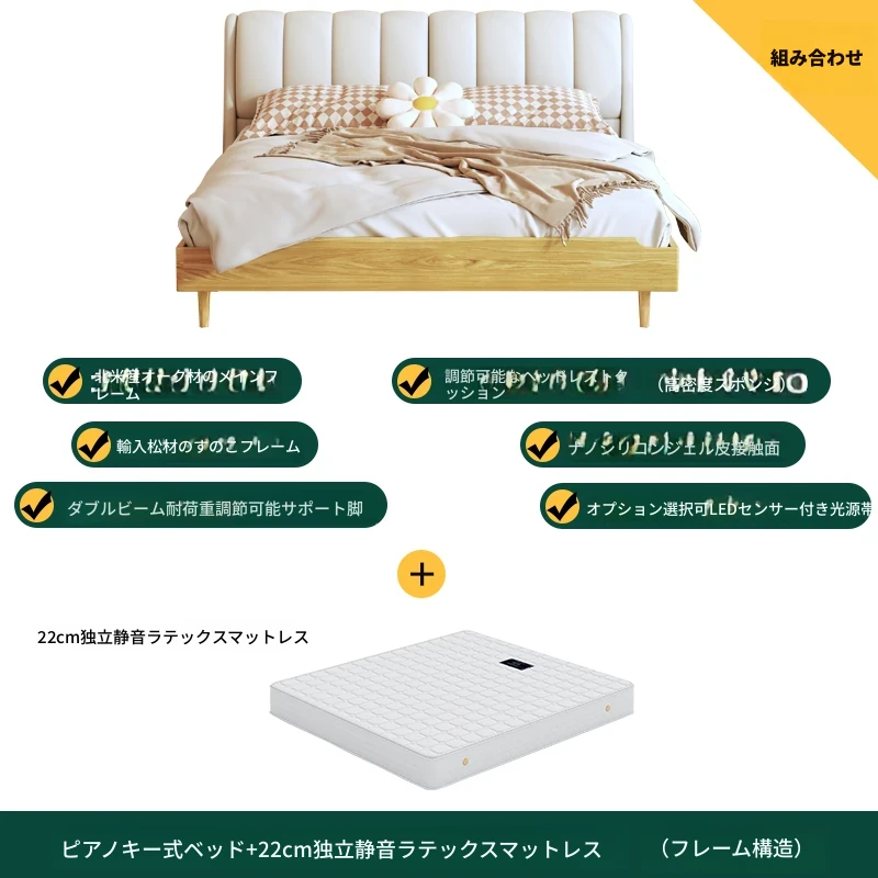 ピアノキー構造ベッド+22cm独立静音ラテックスマットレス(ハイブリッド構造)