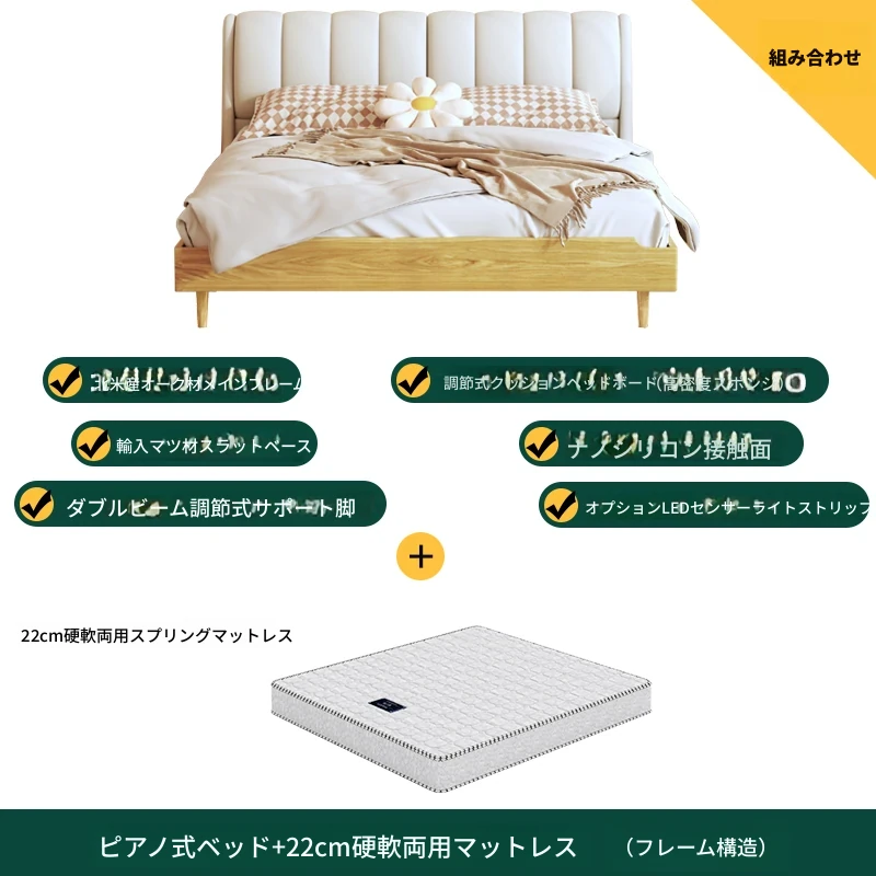 ピアノキー構造ベッド+22cmソフト&ハードデュアルユースマットレス(ハイブリッド構造)