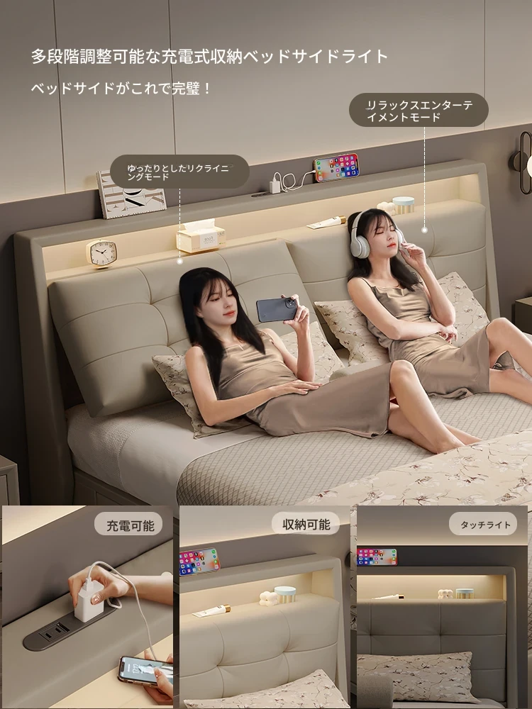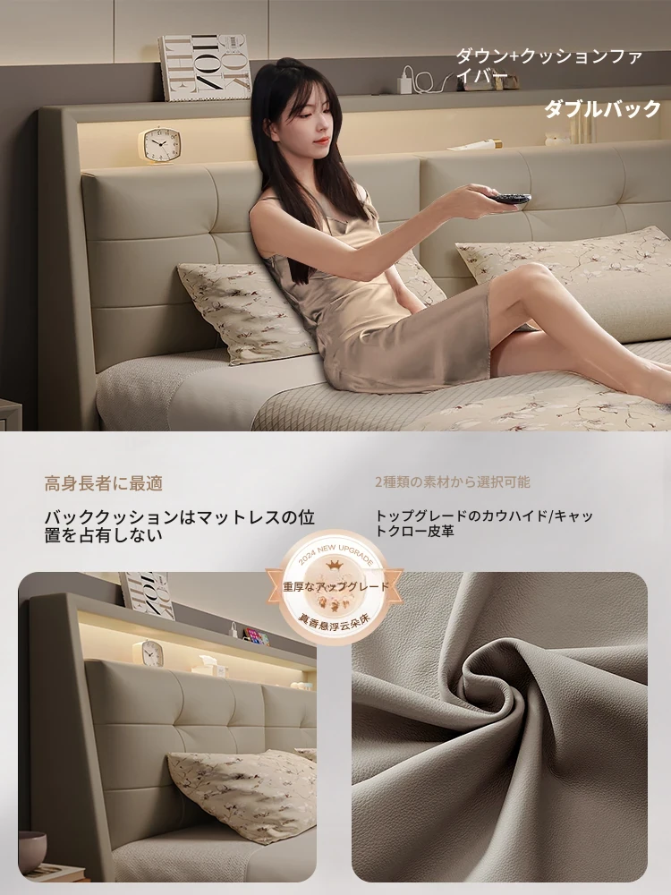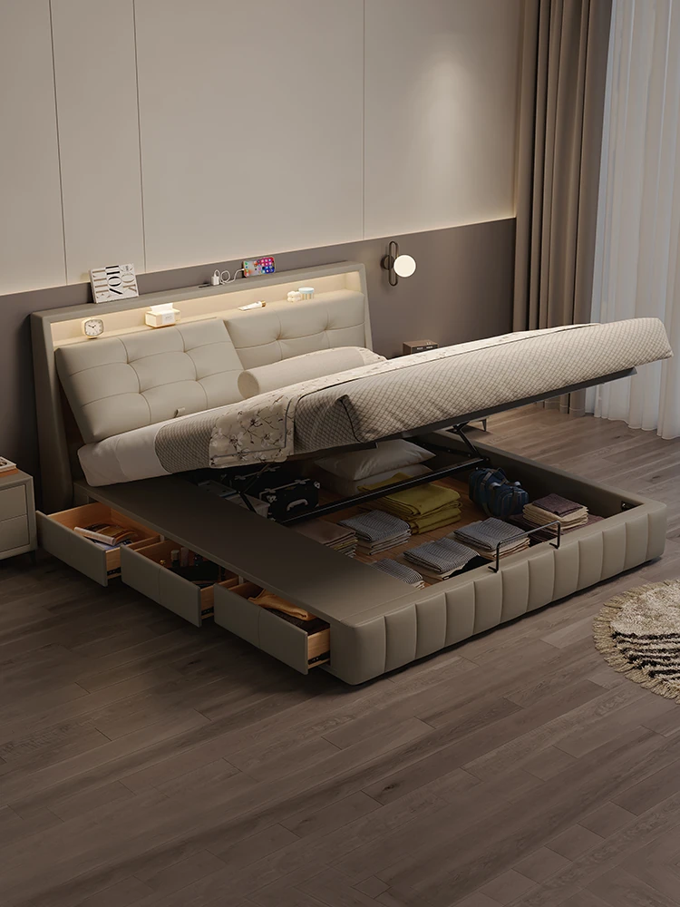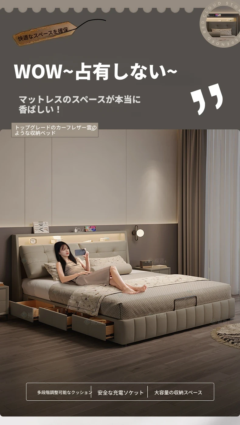 美宅生活の高級感溢れる次卧用ソフトパッキング雲のような多機能ベッド、真皮仕上げで収納スペースも完備!主寝室にもぴったり、ダブルベッドで快適な眠りを提供します。