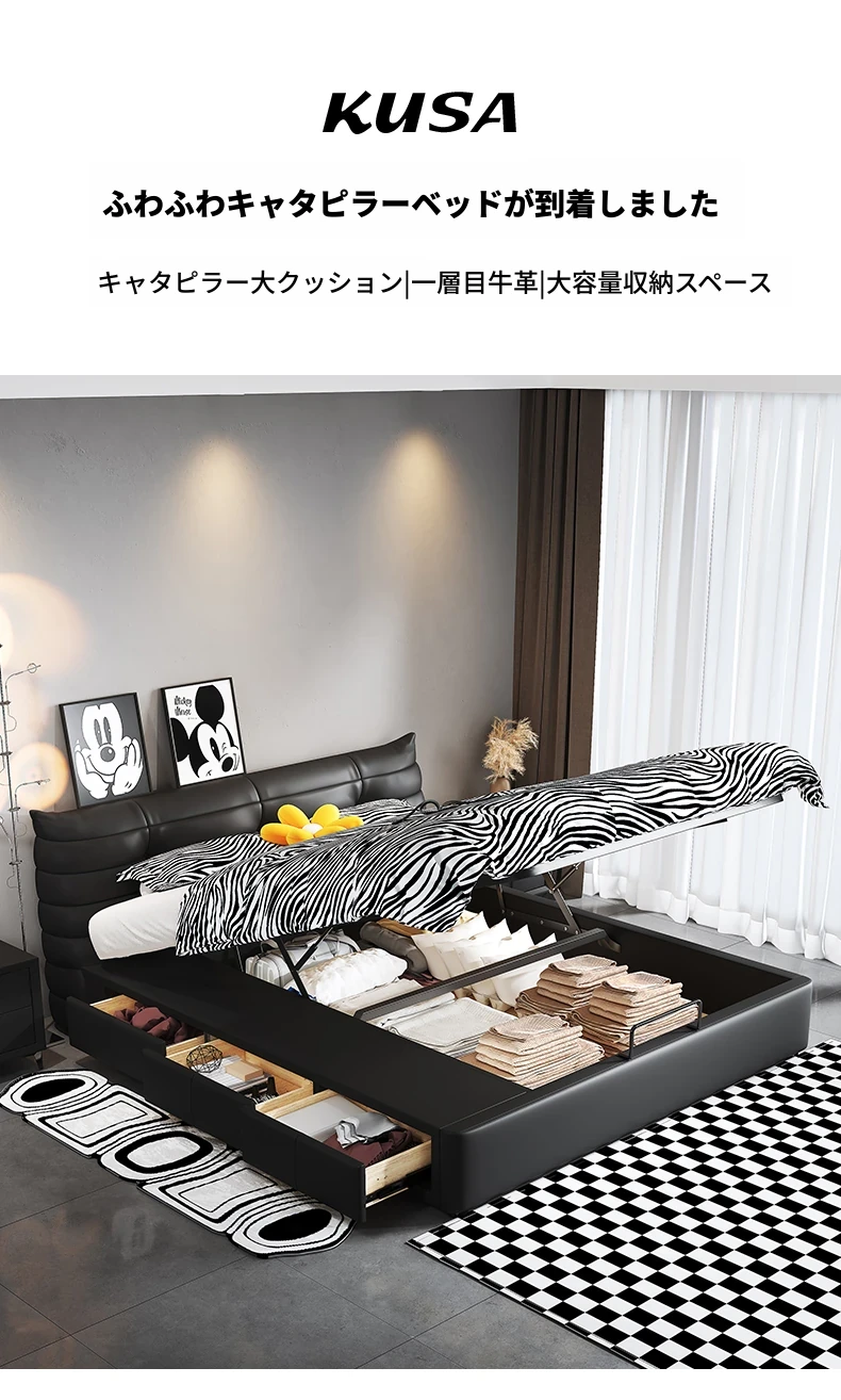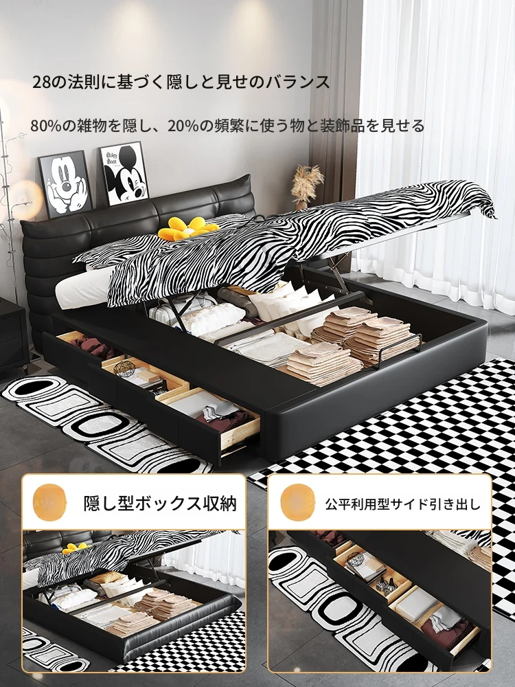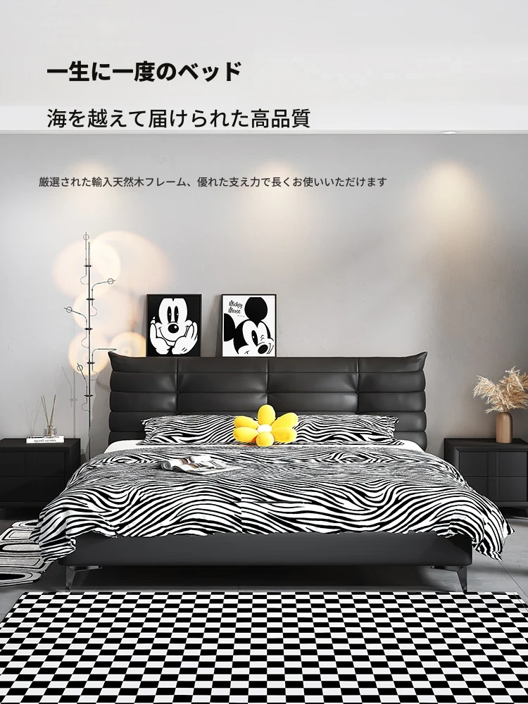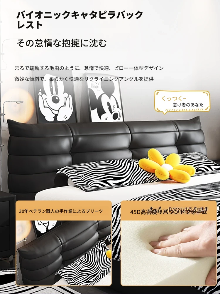 高級でオシャレな1.8mイタリア製ミニマリストベッド - 大容量収納付き!毛毛虫スタイルダブルベッド、主寝室にぴったりなトレンドデザイン!