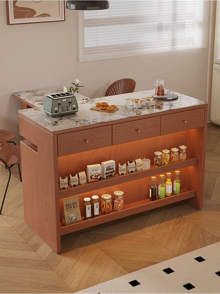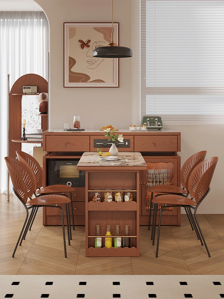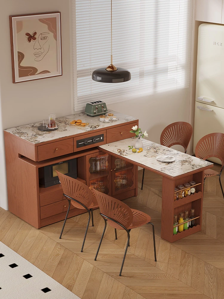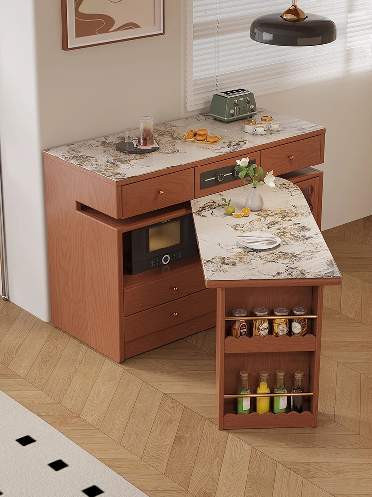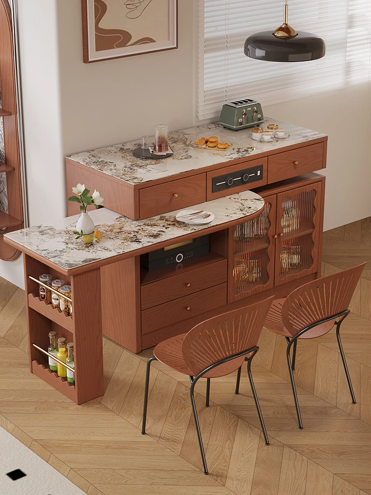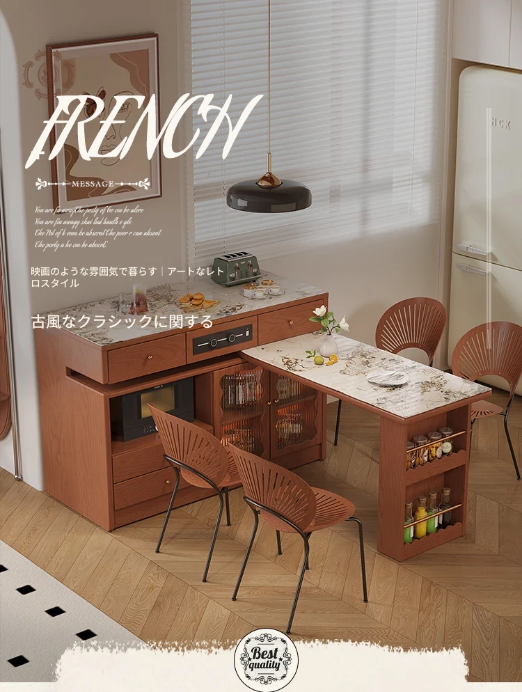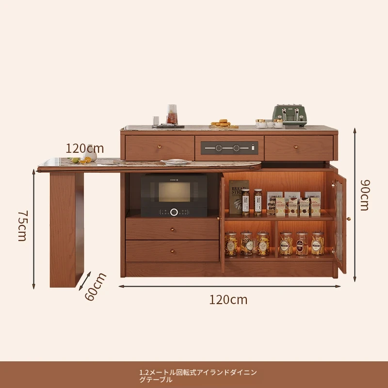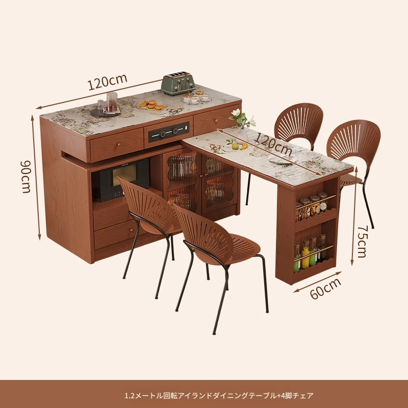 天然木材使用!多機能アイランドカウンターテーブル:中華風デザインの伸縮式ダイニングテーブル兼バーテーブル