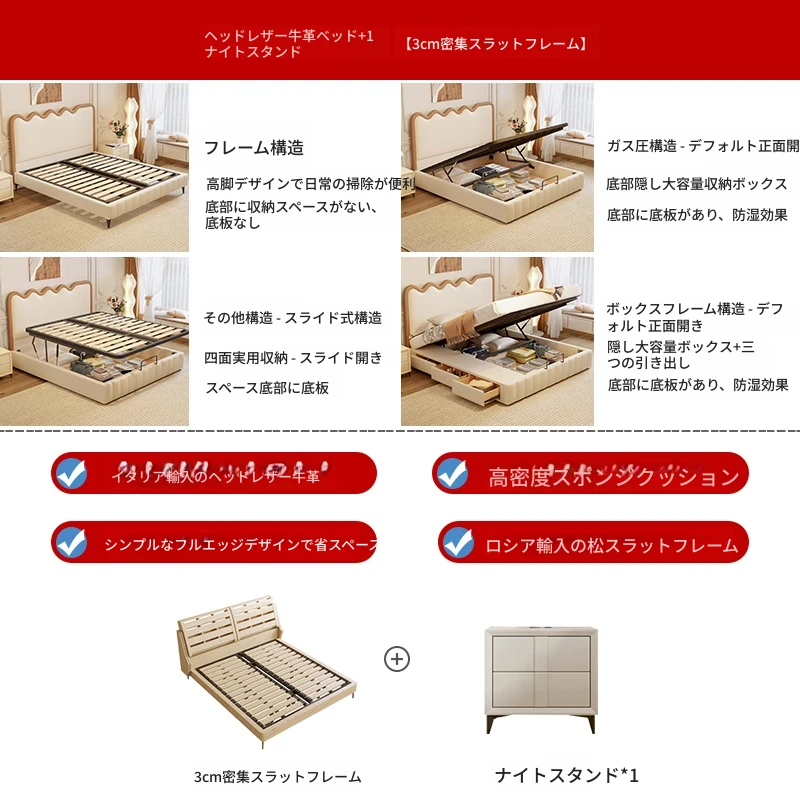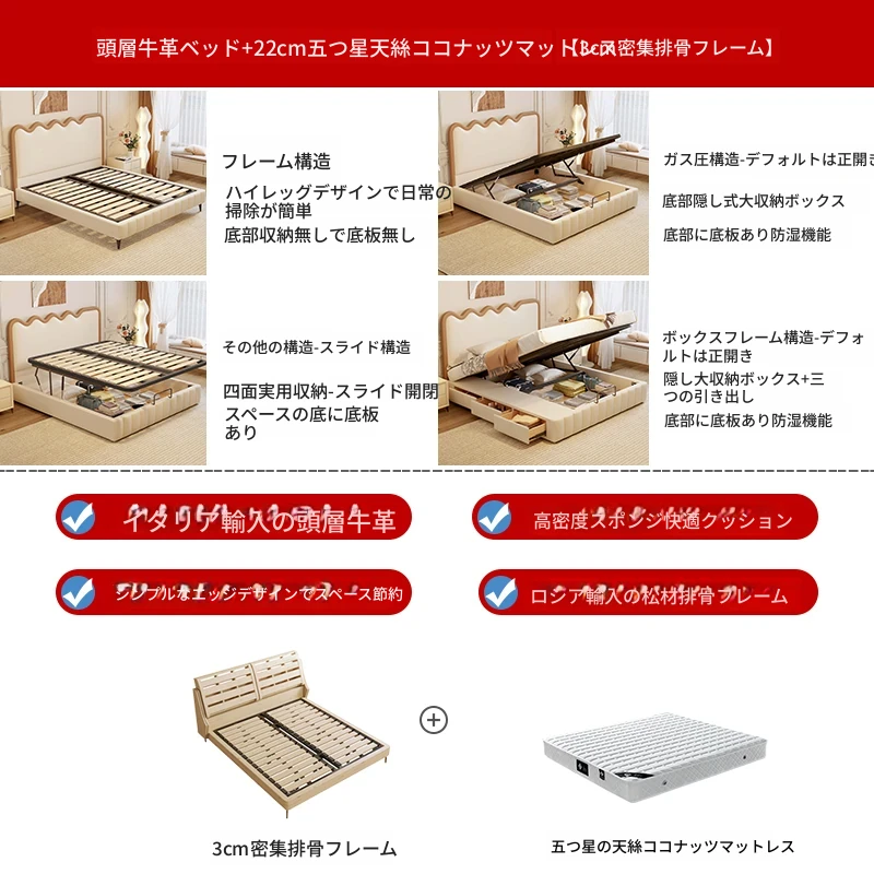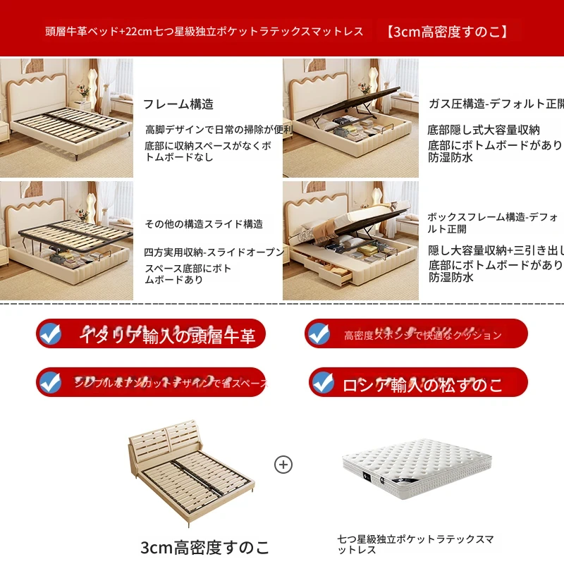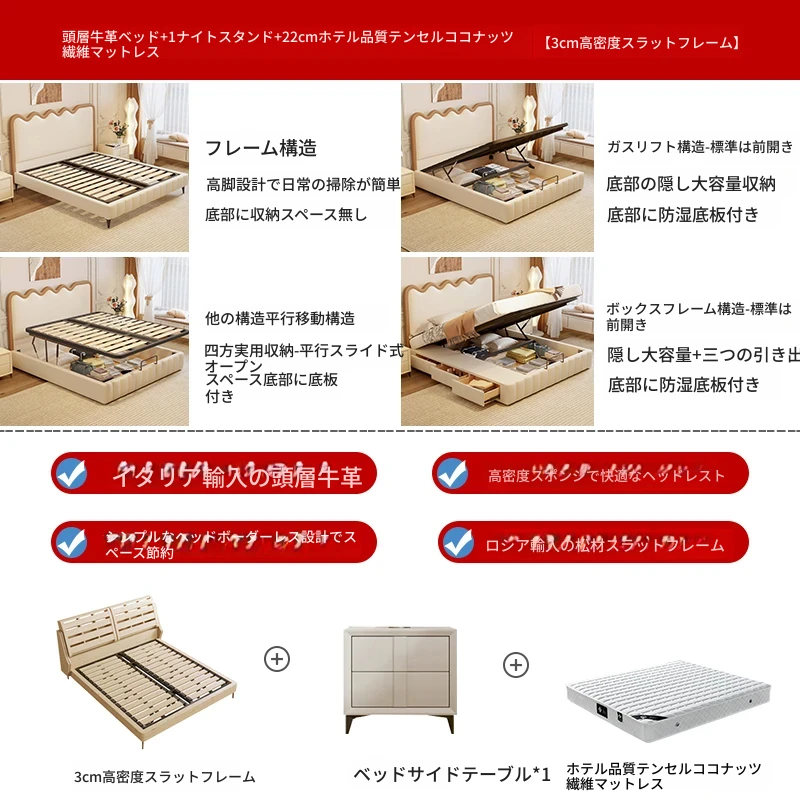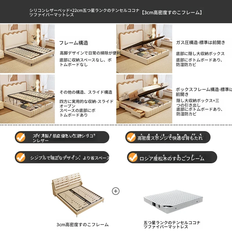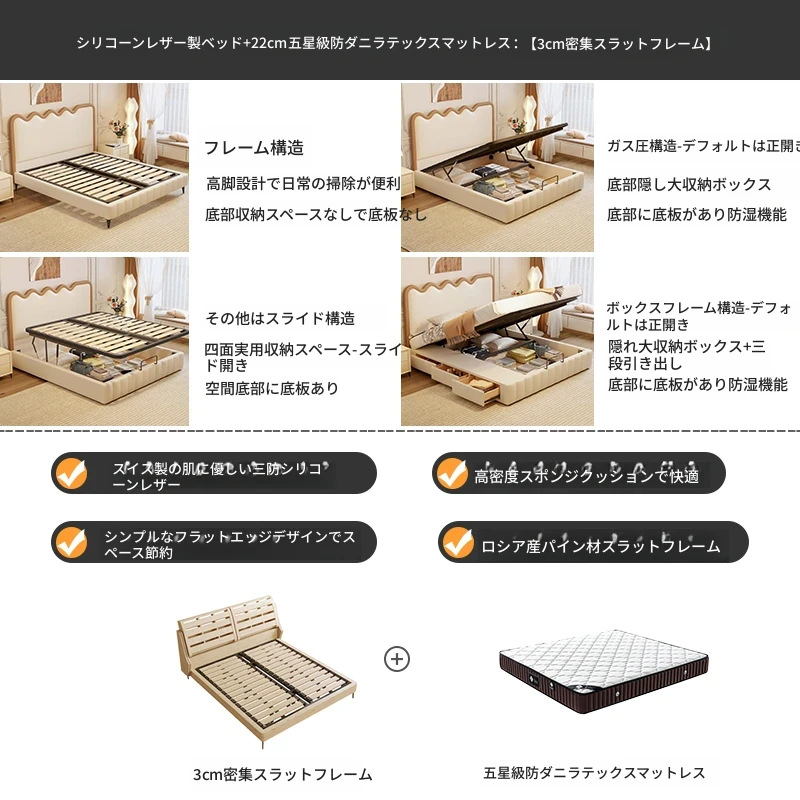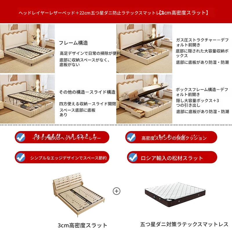 トップレザー仕上げのベッド+1キャビネット+22cm 六つ星クラスの抗菌防ダニラテックスマットレス