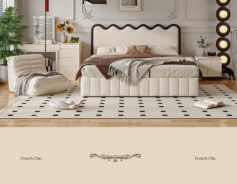 Vintage-Inspired Cream High-Back Wave Pattern Bed - Modern Storage Bed for Your Dream Master Bedroom by Suyan Furniture