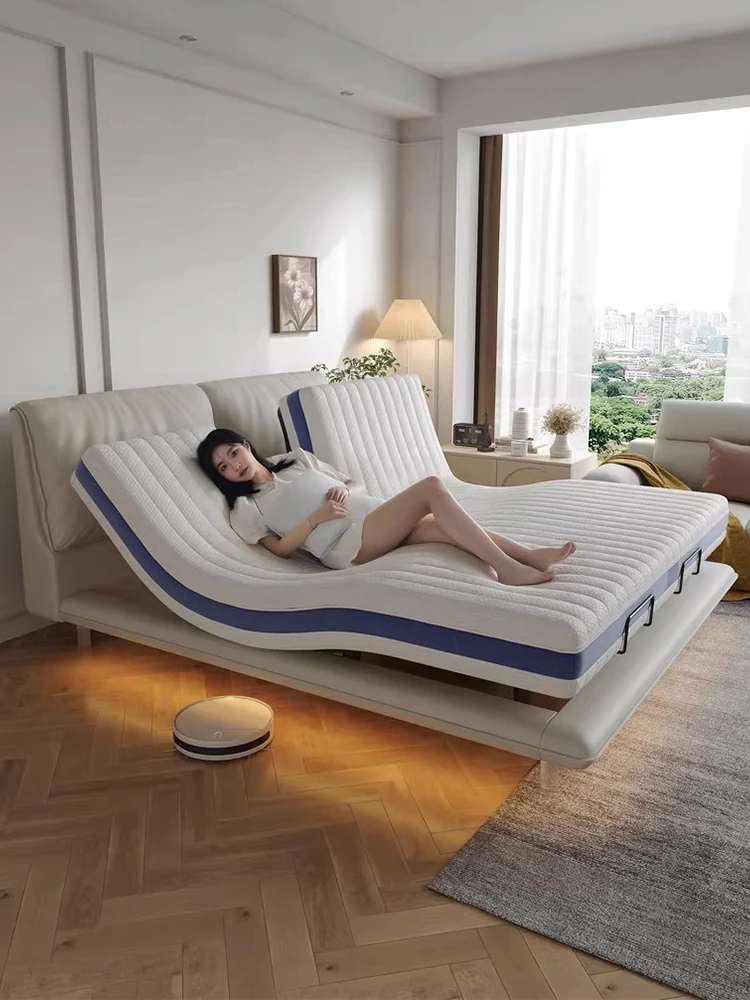 多機能エアーベッド!大象耳デザインのモダンな電動スマートベッド。静かでスムーズなリフト機能付き、夫婦がゆったり眠れる。